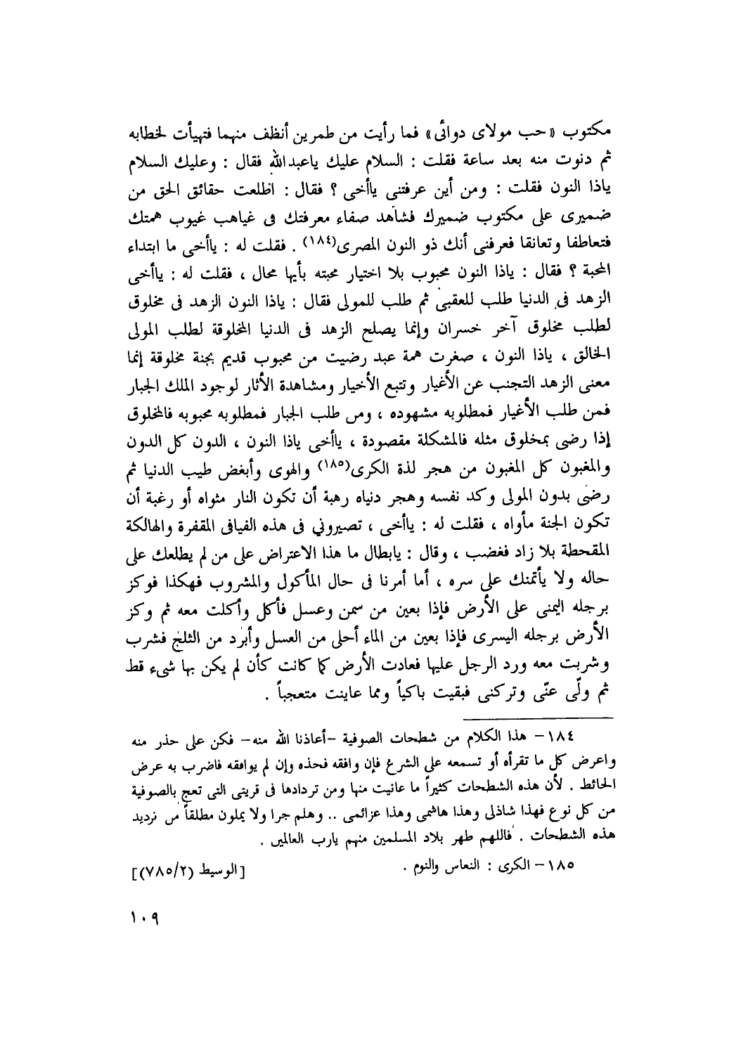 يا أخي، أفنيت عمرك في اللعب، وغيرك فاز بالمقصود وأنت منه بعيد، غيرك على الجادة، وأنت من الشهوات في أوجال وتنكيد، ترى متى يقال: فلان استقال ورجع. يا له من وقت سعيد، متى تخرج من الهوى وترجع إلى مولاك العزيز الحميد، يا مسكين، لو عاينت قلق التائبين، وتململ الخائفين من هول الوعيد، جعلوا قرّة أعينهم في الصلاة، والزكاة، والتزهيد، وأهل الحرمان ضيعوا الشباب في الغفلة، والشيب في الحرص والأمل المديد، لا بالشباب انتفعت، ولا عند المشيب ارتجعت، يا ضيعة الشباب والمشيب: {وَلَوْ تَرَى إِذْ فَزِعُوا فَلا فَوْتَ وَأُخِذُوا مِنْ مَكَانٍ قَرِيبٍ} سبأ 51.