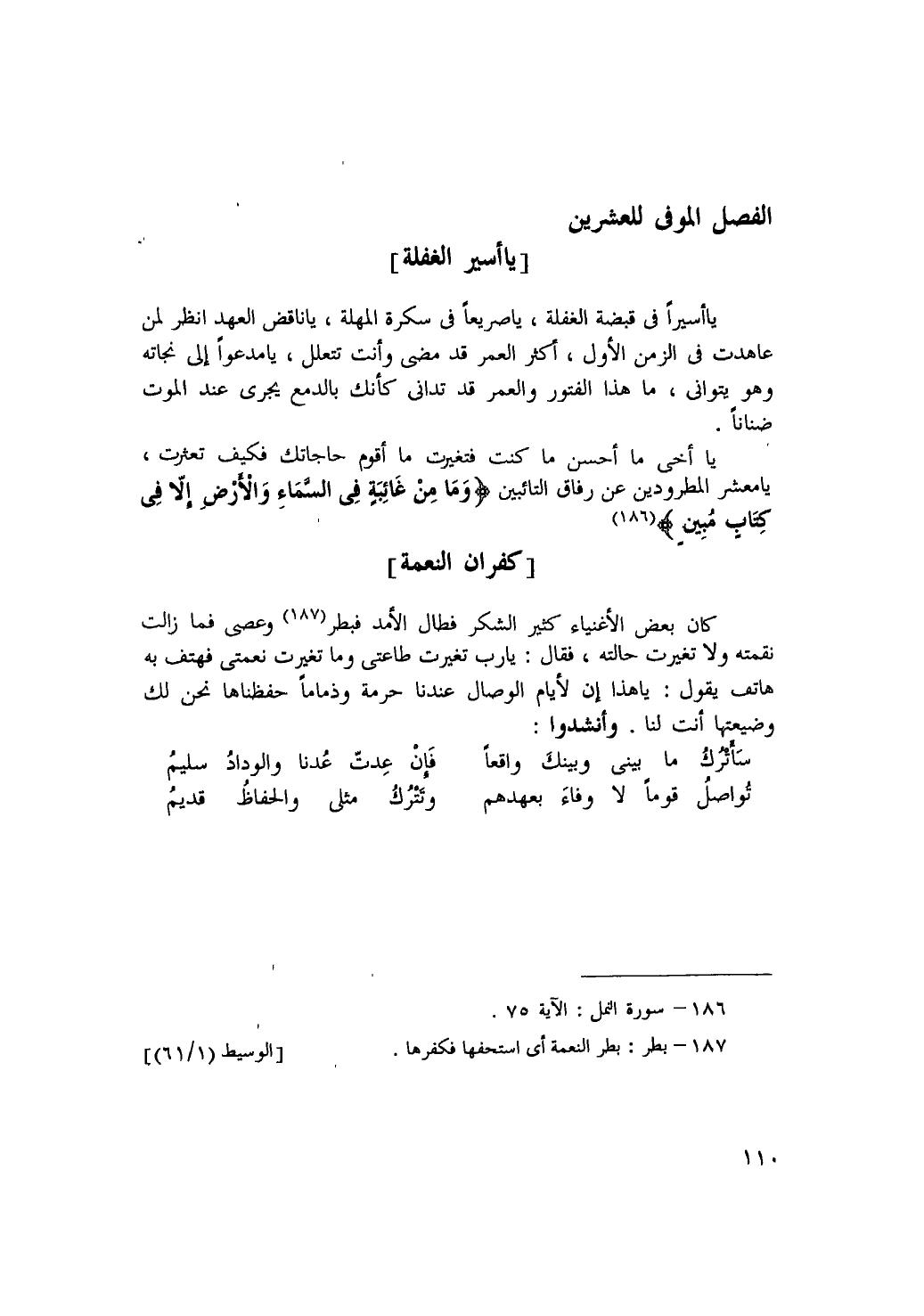فقلت: كيف وأنت ملفوف في حصير وأي نعمة عليك؟!.