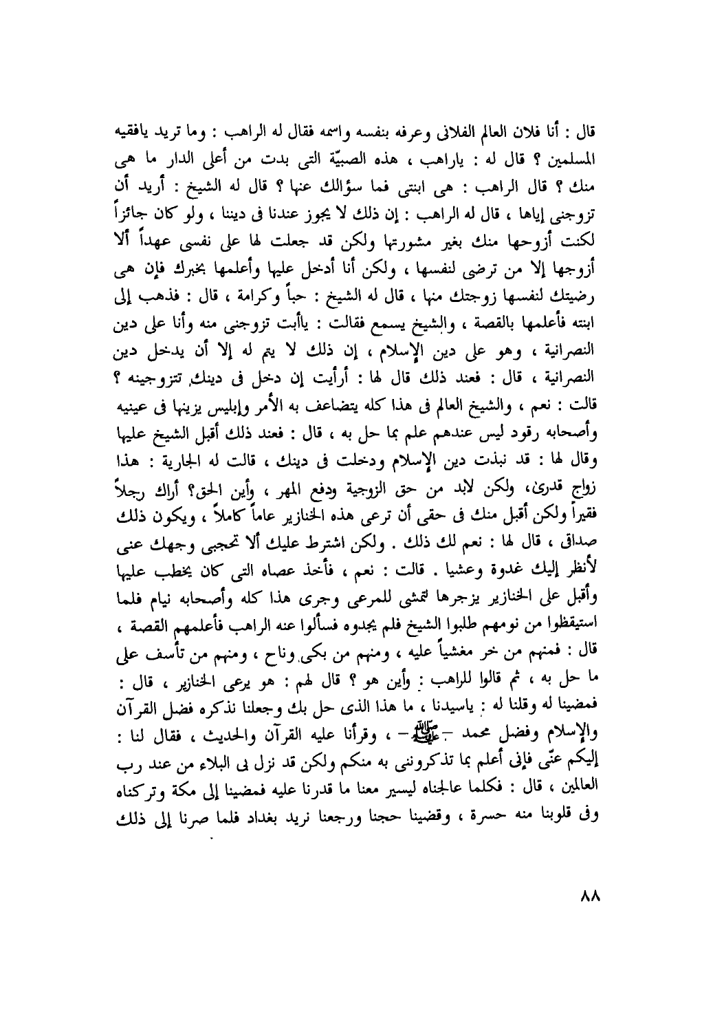 يا أسيرا في قبضة الغفلة، يا صريعا في سكرة المهلة، يا ناقض العهد، انظر لمن عاهدت في الزمن الأول، أكثر العمر قد مضى، وانت تتعلل، يا مدعوّا إلى نجاته وهو يتوانى، ما هذا الفتور والعمر قد تدانى، كأنك بالدمع يجري عند الموت هتانا.