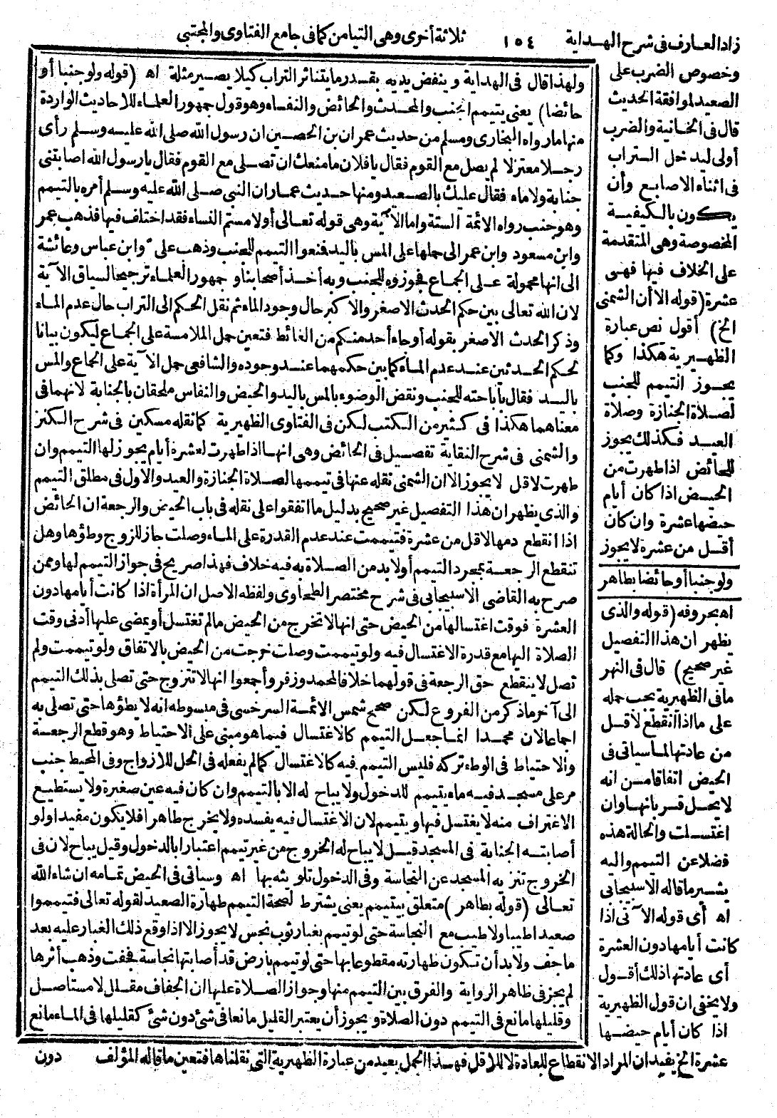 وَلَفْظُهُ الْأَصْلُ أَنَّ الْمَرْأَةَ إذَا كَانَتْ أَيَّامُهَا دُونَ الْعَشَرَةِ فَوَقْتُ اغْتِسَالِهَا مِنْ الْحَيْضِ حَتَّى أَنَّهَا لَا تَخْرُجُ مِنْ الْحَيْضِ مَا لَمْ تَغْتَسِلْ أَوْ يَمْضِي عَلَيْهَا أَدْنَى وَقْتِ الصَّلَاةِ إلَيْهَا مَعَ قُدْوَةِ الِاغْتِسَالِ فِيهِ، وَلَوْ تَيَمَّمَتْ، وَصَلَّتْ خَرَجَتْ مِنْ الْحَيْضِ بِالِاتِّفَاقِ وَلَوْ تَيَمَّمَتْ وَلَمْ تُصَلِّ لَا يَنْقَطِعُ حَقُّ الرَّجْعَةِ فِي قَوْلِهِمَا خِلَافًا لِمُحَمَّدٍ وَزُفَرَ وَأَجْمَعُوا أَنَّهَا لَا تَتَزَوَّجُ حَتَّى تُصَلِّيَ بِذَلِكَ التَّيَمُّمِ إلَى آخِرِ مَا ذُكِرَ مِنْ الْفُرُوعِ لَكِنْ صَحَّحَ شَمْسُ الْأَئِمَّةِ السَّرَخْسِيُّ فِي مَبْسُوطِهِ أَنَّهُ لَا يَطَؤُهَا حَتَّى تُصَلِّيَ بِهِ إجْمَاعًا؛ لِأَنَّ مُحَمَّدًا إنَّمَا جَعَلَ التَّيَمُّمَ كَالِاغْتِسَالِ فِيمَا هُوَ مَبْنِيٌّ عَلَى الِاحْتِيَاطِ، وَهُوَ قَطْعُ الرَّجْعَةِ وَالِاحْتِيَاطُ فِي الْوَطْءِ تَرْكُهُ فَلَيْسَ التَّيَمُّمُ فِيهِ كَالِاغْتِسَالِ كَمَا لَمْ يَفْعَلْهُ فِي الْحِلِّ لِلْأَزْوَاجِ وَفِي الْمُحِيطِ جُنُبٌ مَرَّ عَلَى مَسْجِدٍ فِيهِ مَاءٌ يَتَيَمَّمُ لِلدُّخُولِ وَلَا يُبَاحُ لَهُ إلَّا بِالتَّيَمُّمِ، وَإِنْ كَانَ فِيهِ عَيْنٌ صَغِيرَةٌ وَلَا يَسْتَطِيعُ الِاغْتِرَافَ مِنْهُ لَا يَغْتَسِلُ فِيهَا وَيَتَيَمَّمُ؛ لِأَنَّ الِاغْتِسَالَ فِيهِ يُفْسِدُهُ وَلَا يَخْرُجُ طَاهِرًا فَلَا يَكُونُ مُفِيدًا وَلَوْ أَصَابَتْهُ الْجَنَابَةُ فِي الْمَسْجِدِ قِيلَ لَا يُبَاحُ لَهُ الْخُرُوجُ مِنْ غَيْرِ تَيَمُّمٍ اعْتِبَارًا بِالدُّخُولِ وَقِيلَ يُبَاحُ؛ لِأَنَّ فِي الْخُرُوجِ تَنْزِيهَ الْمَسْجِدِ عَنْ النَّجَاسَةِ وَفِي الدُّخُولِ تَلْوِيثَهُ بِهَا. اهـ. وَسَيَأْتِي فِي الْحَيْضِ تَمَامُهُ إنْ شَاءَ اللَّهُ تَعَالَى.
