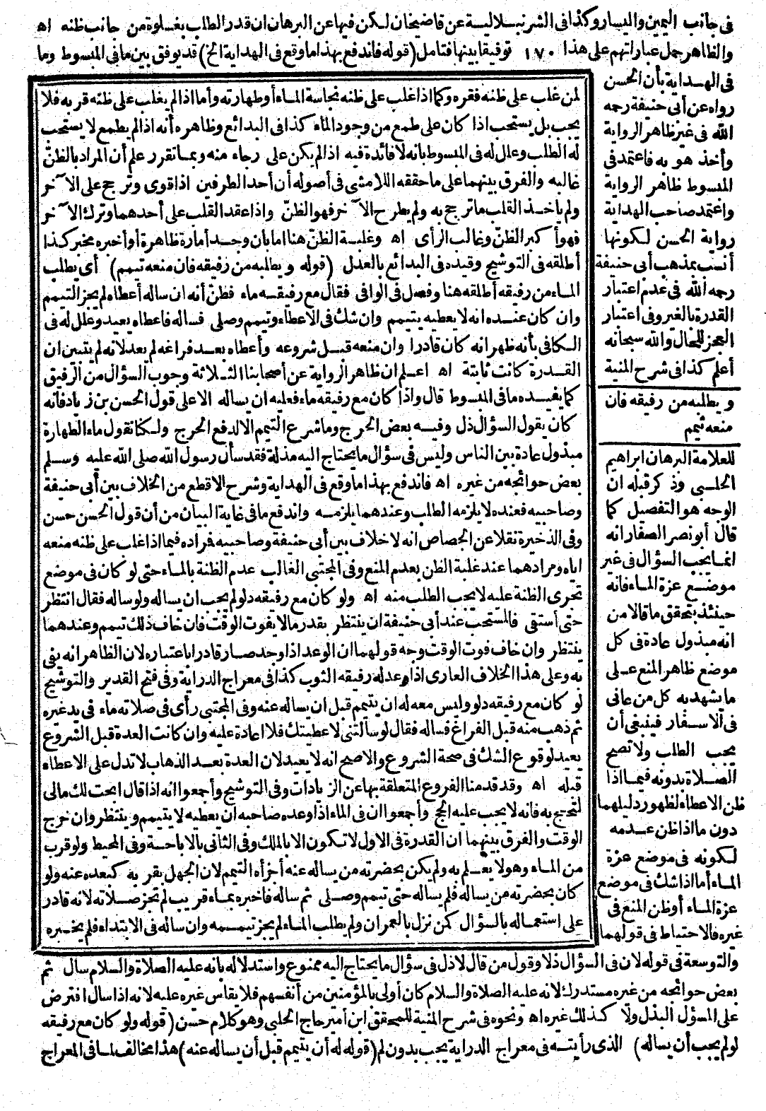 اعْلَمْ أَنَّ ظَاهِرَ الرِّوَايَةِ عَنْ أَصْحَابِنَا الثَّلَاثَةِ وُجُوبُ السُّؤَالِ مِنْ الرَّفِيقِ كَمَا يُفِيدُهُ مَا فِي الْمَبْسُوطِ قَالَ: وَإِذَا كَانَ مَعَ رَفِيقِهِ مَاءٌ فَعَلَيْهِ أَنْ يَسْأَلَهُ إلَّا عَلَى قَوْلِ الْحَسَنِ بْنِ زِيَادٍ، فَإِنَّهُ كَانَ يَقُولُ السُّؤَالُ ذُلٌّ وَفِيهِ بَعْضُ الْحَرَجِ وَمَا شُرِعَ التَّيَمُّمُ إلَّا لِدَفْعِ الْحَرَجِ وَلَكِنَّا نَقُولُ مَاءُ الطَّهَارَةِ مَبْذُولٌ عَادَةً بَيْنَ النَّاسِ وَلَيْسَ فِي سُؤَالِ مَا يَحْتَاجُ إلَيْهِ مَذَلَّةٌ فَقَدْ «سَأَلَ رَسُولُ اللَّهِ - صَلَّى اللَّهُ عَلَيْهِ وَسَلَّمَ - بَعْضَ حَوَائِجِهِ مِنْ غَيْرِهِ» اهـ.