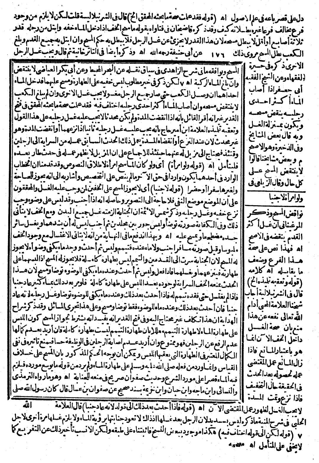 الْمَسْحِ وَيُوَافِقُهُ مَا فِي شَرْحِ الزَّاهِدِيِّ فِي سِيَاقِ نَقْلِهِ عَنْ الْبَحْرِ الْمُحِيطِ وَعَنْ أَبِي بَكْرٍ الْعِيَاضِيِّ لَا يَنْتَقِضُ، وَإِنْ بَلَغَ الْمَاءُ الرُّكْبَةَ. اهـ.