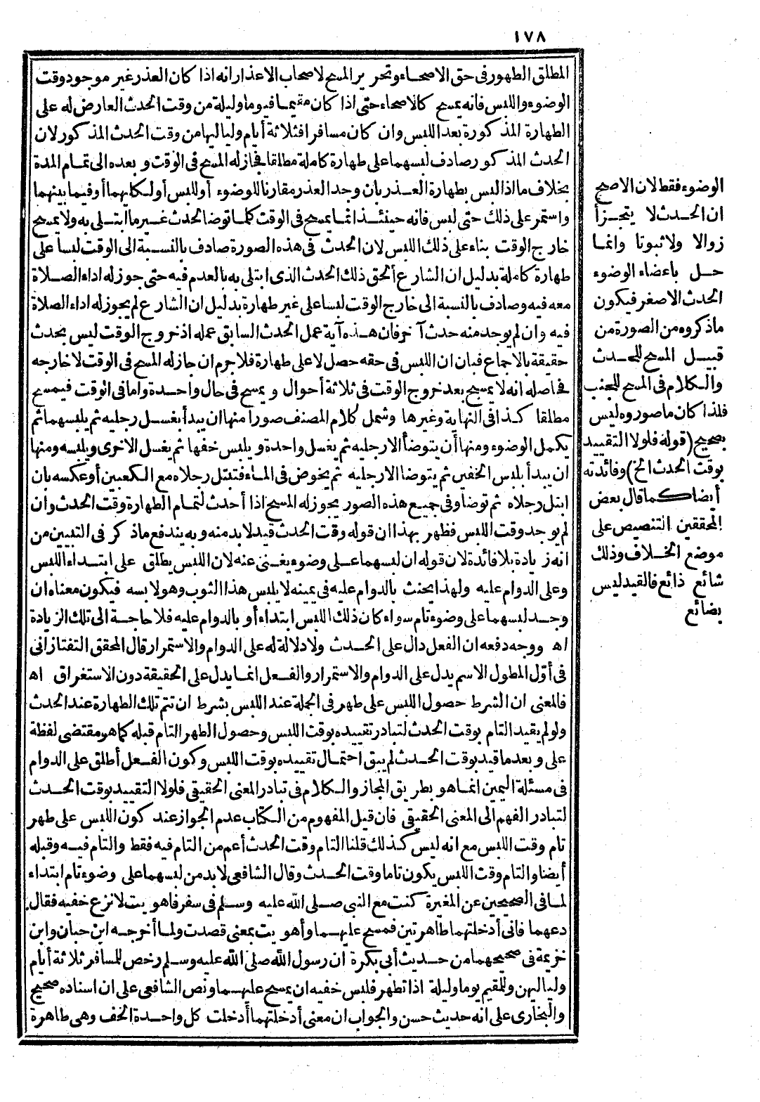 (قَوْلُهُ: فَلَوْلَا التَّقْيِيدُ بِوَقْتِ الْحَدَثِ إلَخْ) وَفَائِدَتُهُ أَيْضًا كَمَا قَالَ بَعْضُ الْمُحَقِّقِينَ التَّنْصِيصُ عَلَى مَوْضِعِ الْخِلَافِ وَذَلِكَ شَائِعٌ ذَائِعٌ فَالْقَيْدُ لَيْسَ بِضَائِعٍ
