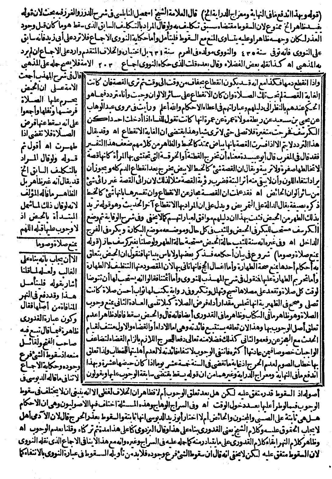 كَذَا نَقَلَهُ بَعْضُ الْفُضَلَاءِ وَقَالَ بَعْدَهُ قُلْت الَّذِي حَكَاهُ النَّوَوِيُّ إجْمَاعُ الْأُمَّةِ فَلَا يَصِحُّ حَمْلُهُ عَلَى الْمَذْهَبِيِّ، قَالَ فِي شَرْحِ الْمُهَذَّبِ أَجْمَعَتْ الْأُمَّةُ عَلَى أَنَّ الْحَيْضَ يُحَرِّمُ عَلَيْهَا الصَّلَاةَ فَرْضَهَا وَنَفْلَهَا وَأَجْمَعُوا عَلَى أَنَّهُ يَسْقُطُ عَنْهَا فَرْضُ الصَّلَاةِ فَلَا تَقْضِي إذَا طَهُرَتْ. اهـ.