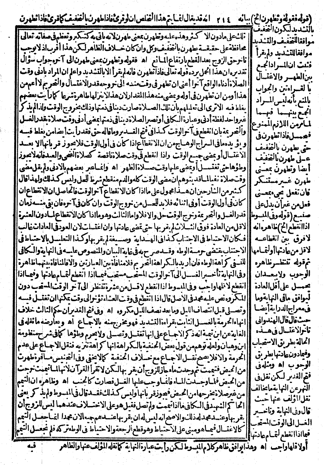وَاعْلَمْ أَنَّ الْمُرَادَ بِأَدْنَى وَقْتِ الصَّلَاةِ أَدْنَاهُ الْوَاقِعُ آخِرًا أَعْنِي أَنْ تَطْهُرَ فِي وَقْتٍ مِنْهُ إلَى خُرُوجِهِ قَدْرَ الِاغْتِسَالِ وَالتَّحْرِيمُ لَا أَعَمُّ مِنْ هَذَا أَوْ مِنْ إنْ تَطَهَّرْنَ فِي أَوَّلِهِ وَيَمْضِي مِنْهُ هَذَا الْمِقْدَارُ؛ لِأَنَّ هَذَا لَا يُنْزِلُهَا طَاهِرَةً شَرْعًا كَمَا رَأَيْت بَعْضَهُمْ يَغْلَطُ فِيهِ، أَلَا تَرَى إلَى تَعْلِيلِهِمْ بِأَنَّ تِلْكَ الصَّلَاةَ صَارَتْ دَيْنًا فِي ذِمَّتِهَا وَذَلِكَ بِخُرُوجِ الْوَقْتِ وَلِذَا لَمْ يَذْكُرْ غَيْرُ وَاحِدٍ لَفْظَةَ أَدْنَى وَعِبَارَةُ الْكَافِي أَوْ تَصِيرُ الصَّلَاةُ دَيْنًا فِي ذِمَّتِهَا بِمُضِيِّ أَدْنَى وَقْتِ صَلَاةٍ بِقَدْرِ الْغُسْلِ وَالتَّحْرِيمَةِ بِأَنْ انْقَطَعَ فِي آخِرِ الْوَقْتِ، كَذَا فِي فَتْحِ الْقَدِيرِ وَمَا قَالَهُ حَقٌّ فَقَدْ رَأَيْت أَيْضًا مَنْ يَغْلَطُ فِيهِ، وَيُؤَيِّدُهُ مَا فِي السِّرَاجِ الْوَهَّاجِ مِنْ أَنَّ الِانْقِطَاعَ إذَا كَانَ فِي أَوَّلِ الْوَقْتِ فَلَا يَجُوزُ قُرْبَانُهَا إلَّا بَعْدَ الِاغْتِسَالِ أَوْ بِمُضِيِّ جَمِيعِ الْوَقْتِ، وَإِذَا انْقَطَعَ فِي وَقْتِ صَلَاةٍ نَاقِصَةٍ كَصَلَاةِ الضُّحَى وَالْعِيدِ فَإِنَّهُ لَا يَجُوزُ وَطْؤُهَا حَتَّى تَغْتَسِلَ أَوْ يَمْضِيَ عَلَيْهَا وَقْتُ صَلَاةِ الظُّهْرِ. اهـ.