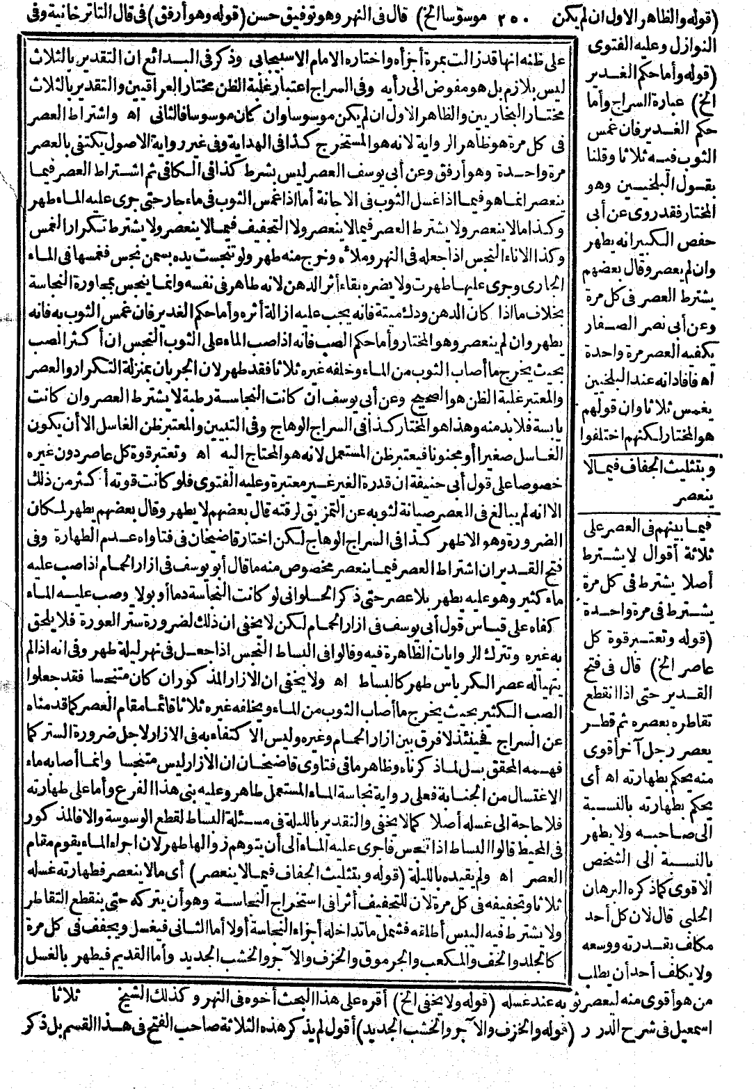 وَلَا يَخْفَى أَنَّ الْإِزَارَ الْمَذْكُورَ إنْ كَانَ مُتَنَجِّسًا فَقَدْ جَعَلُوا الصَّبَّ الْكَثِيرَ بِحَيْثُ يَخْرُجُ مَا أَصَابَ الثَّوْبَ مِنْ الْمَاءِ وَيَخْلُفُهُ غَيْرُهُ ثَلَاثًا قَائِمًا مَقَامَ الْعَصْرِ كَمَا قَدَّمْنَاهُ عَنْ السِّرَاجِ فَحِينَئِذٍ لَا فَرْقَ بَيْنَ إزَارِ الْحَمَّامِ وَغَيْرِهِ وَلَيْسَ الِاكْتِفَاءُ بِهِ فِي الْإِزَارِ لِأَجْلِ ضَرُورَةِ السِّتْرِ كَمَا فَهِمَهُ الْمُحَقِّقُ بَلْ لِمَا ذَكَرْنَاهُ وَظَاهِرُ مَا فِي فَتَاوَى قَاضِي خَانْ أَنَّ الْإِزَارَ لَيْسَ مُتَنَجِّسًا، وَإِنَّمَا أَصَابَهُ مَاءُ الِاغْتِسَالِ مِنْ الْجَنَابَةِ فَعَلَى رِوَايَةِ نَجَاسَةِ الْمَاءِ الْمُسْتَعْمَلِ طَاهِرٌ وَعَلَيْهِ بُنِيَ هَذَا الْفَرْعُ، وَأَمَّا عَلَى طَهَارَتِهِ فَلَا حَاجَةَ إلَى غَسْلِهِ أَصْلًا كَمَا لَا يَخْفَى وَالتَّقْدِيرُ بِاللَّيْلَةِ فِي مَسْأَلَةِ الْبِسَاطِ لِقَطْعِ الْوَسْوَسَةِ وَإِلَّا فَالْمَذْكُورُ فِي الْمُحِيطِ قَالُوا الْبِسَاطُ إذَا تَنَجَّسَ فَأُجْرِيَ عَلَيْهِ الْمَاءُ إلَى أَنْ يُتَوَهَّمَ زَوَالُهَا طَهُرَ؛ لِأَنَّ إجْرَاءَ الْمَاءِ يَقُومُ مَقَامَ الْعَصْرِ. اهـ.