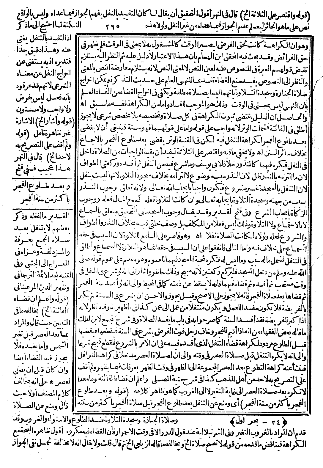 وَالْحَاصِلُ أَنَّ الدَّلِيلَ يَقْتَضِي ثُبُوتَ الْكَرَاهَةِ فِي كُلِّ صَلَاةٍ وَتَخْصِيصُهُ بِلَا مُخَصِّصٍ شَرْعِيٍّ لَا يَجُوزُ أَطْلَقَ فِي الْفَائِتَةِ فَشَمِلَتْ الْوِتْرَ؛ لِأَنَّهُ وَاجِبٌ عَلَى قَوْلِهِ، وَأَمَّا عَلَى قَوْلِهِمَا فَهُوَ سُنَّةٌ فَيَنْبَغِي أَنْ لَا يَقْضِيَ بَعْدَ طُلُوعِ الْفَجْرِ لِكَرَاهَةِ التَّنَفُّلِ فِيهِ لَكِنْ فِي الْقُنْيَةِ الْوِتْرُ يُقْضَى بَعْدَ طُلُوعِ الْفَجْرِ بِالْإِجْمَاعِ بِخِلَافِ سَائِرِ السُّنَنِ. اهـ.