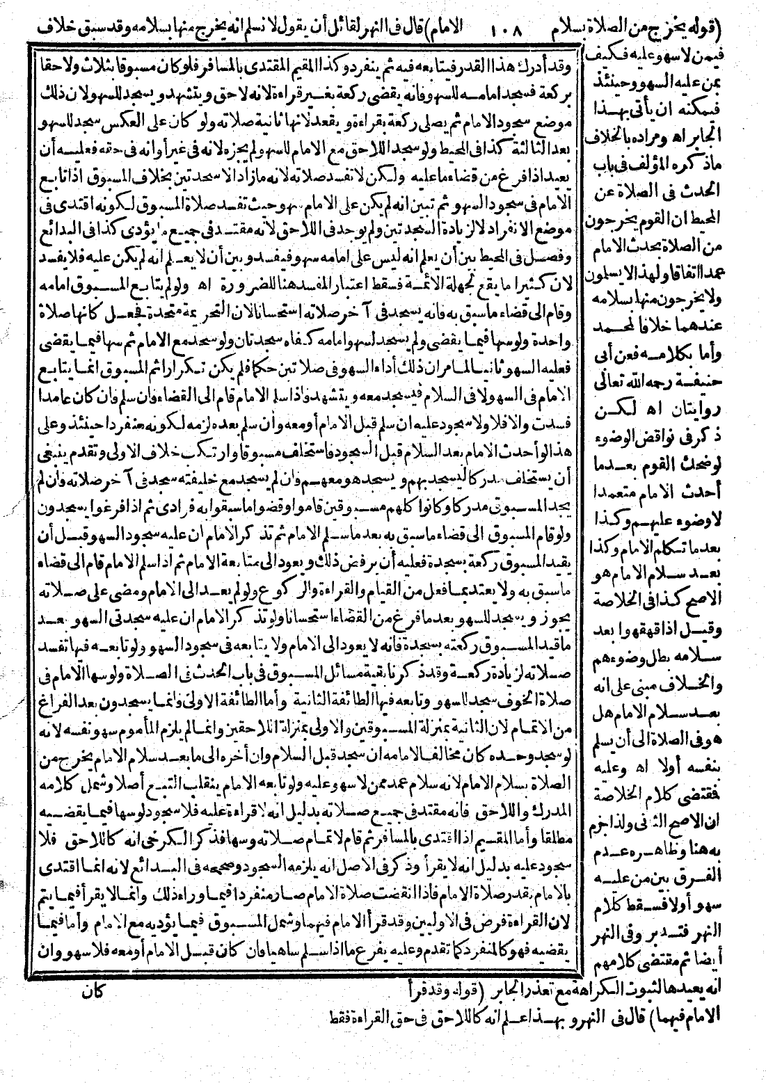 ـــــــــــــــــــــــــــــQ (قَوْلُهُ يَخْرُجُ مِنْ الصَّلَاةِ بِسَلَامِ الْإِمَامِ) قَالَ فِي النَّهْرِ لِقَائِلٍ أَنْ يَقُولَ لَا نُسَلِّمُ أَنَّهُ يَخْرُجُ مِنْهَا بِسَلَامِهِ وَقَدْ سَبَقَ خِلَافٌ فِيمَنْ لَا سَهْوَ عَلَيْهِ فَكَيْفَ بِمَنْ عَلَيْهِ السَّهْوُ وَحِينَئِذٍ فَيُمْكِنُهُ أَنْ يَأْتِيَ بِهَذَا الْجَابِرِ اهـ.