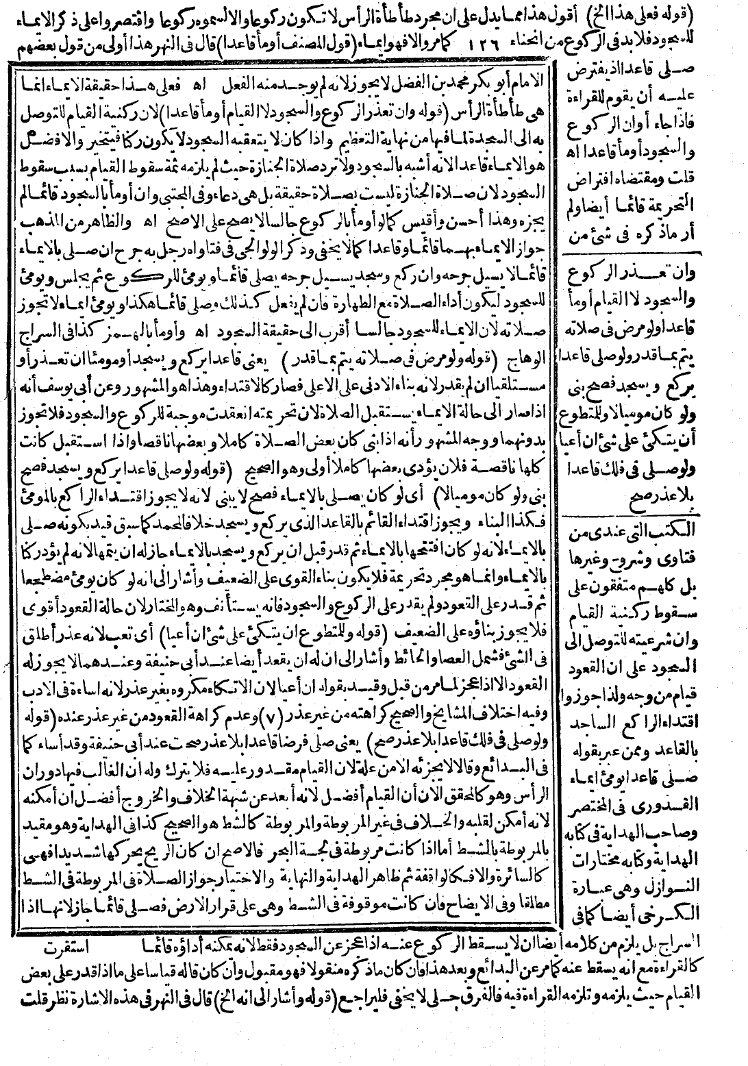 (قَوْلُ الْمُصَنِّفُ أَوْمَأَ قَاعِدًا) قَالَ فِي النَّهْرِ هَذَا أَوْلَى مِنْ قَوْلِ بَعْضِهِمْ صَلَّى قَاعِدًا إذْ يُفْتَرَضُ عَلَيْهِ أَنْ يَقُومَ لِلْقِرَاءَةِ فَإِذَا جَاءَ أَوَانُ الرُّكُوعِ وَالسُّجُودِ أَوْمَأَ قَاعِدًا. اهـ.