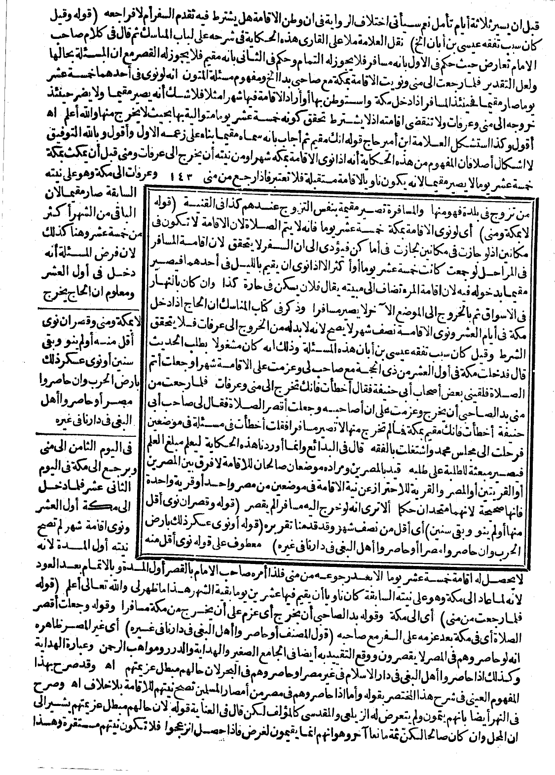 (قَوْلُهُ وَقِيلَ كَانَ سَبَبُ تَفَقُّهِ عِيسَى بْنِ أَبَانَ إلَخْ) نَقَلَ الْعَلَّامَةُ مُلَّا عَلِيٌّ الْقَارِي هَذِهِ الْحِكَايَةَ فِي شَرْحِهِ عَلَى لُبَابِ الْمَنَاسِكِ، ثُمَّ قَالَ فِي كَلَامِ صَاحِبِ الْإِمَامِ تَعَارُضٌ حَيْثُ حَكَمَ فِي الْأَوَّلِ بِأَنَّهُ مُسَافِرٌ فَلَا يَجُوزُ لَهُ التَّمَامُ وَحَكَمَ فِي الثَّانِي بِأَنَّهُ مُقِيمٌ فَلَا يَجُوزُ لَهُ الْقَصْرُ مَعَ أَنَّ الْمَسْأَلَةَ بِحَالِهَا وَلَعَلَّ التَّقْدِيرَ فَلَمَّا رَجَعْت إلَى مِنًى وَنَوَيْت الْإِقَامَةَ بِمَكَّةَ مَعَ صَاحِبِي بَدَا إلَخْ وَمَفْهُومُ مَسْأَلَةِ الْمُتُونِ أَنَّهُ لَوْ نَوَى فِي أَحَدِهِمَا خَمْسَةَ عَشَرَ يَوْمًا صَارَ مُقِيمًا فَحِينَئِذٍ الْمُسَافِرُ إذَا دَخَلَ مَكَّةَ وَاسْتَوْطَنَ بِهَا أَوْ أَرَادَ الْإِقَامَةَ فِيهَا شَهْرًا مَثَلًا فَلَا شَكَّ أَنَّهُ يَصِيرُ مُقِيمًا، وَلَا يَضُرُّ حِينَئِذٍ خُرُوجُهُ إلَى مِنًى وَعَرَفَاتٍ، وَلَا تَنْقَضِي إقَامَتُهُ إذْ لَا يُشْتَرَطُ تَحَقُّقُ كَوْنِهِ خَمْسَةَ عَشْرَ يَوْمًا مُتَوَالِيَةً بِهَا بِحَيْثُ لَا يَخْرُجُ مِنْهَا - وَاَللَّهُ أَعْلَمُ - اهـ.