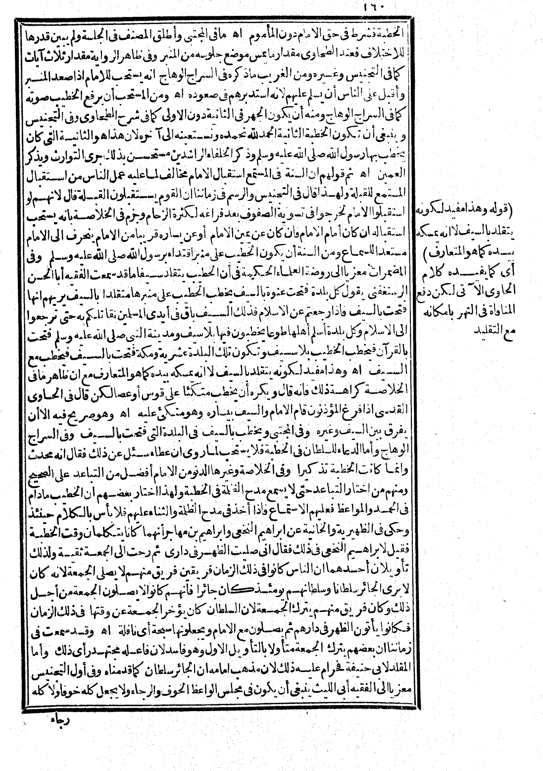 الْخُطْبَةِ فَشَرْطٌ فِي حَقِّ الْإِمَامِ دُونَ الْمَأْمُومِ اهـ.