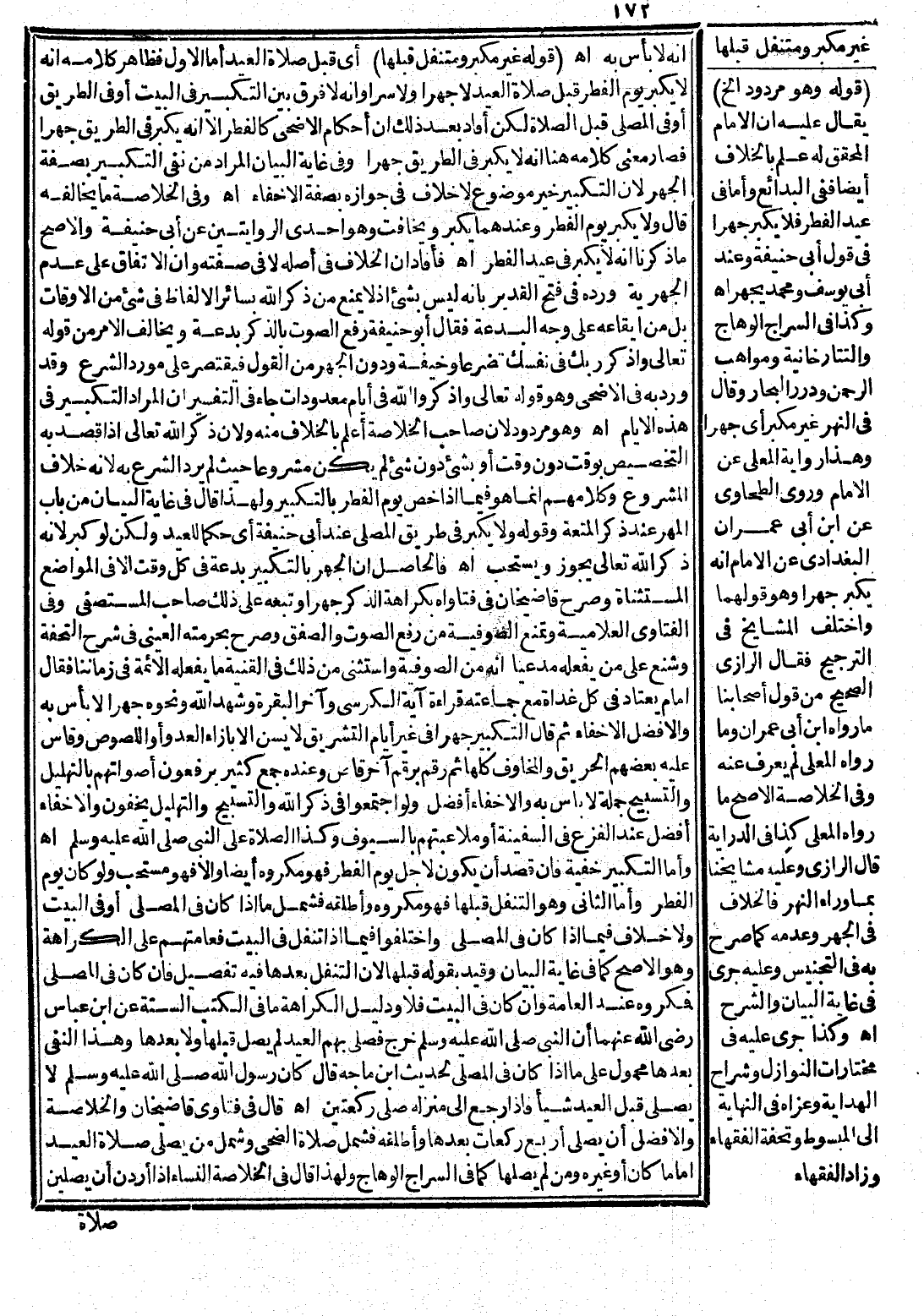 فَأَفَادَ أَنَّ الْخِلَافَ فِي أَصْلِهِ لَا فِي صِفَتِهِ وَأَنَّ الِاتِّفَاقَ عَلَى عَدَمِ الْجَهْرِيَّةِ وَرَدَّهُ فِي فَتْحِ الْقَدِيرِ بِأَنَّهُ لَيْسَ بِشَيْءٍ إذْ لَا يَمْنَعُ مِنْ ذِكْرِ اللَّهِ بِسَائِرِ الْأَلْفَاظِ فِي شَيْءٍ مِنْ الْأَوْقَاتِ بَلْ مِنْ إيقَاعِهِ عَلَى وَجْهِ الْبِدْعَةِ فَقَالَ أَبُو حَنِيفَةَ رَفْعُ الصَّوْتِ بِالذِّكْرِ بِدْعَةٌ وَيُخَالِفُ الْأَمْرَ مِنْ قَوْله تَعَالَى {وَاذْكُرْ رَبَّكَ فِي نَفْسِكَ تَضَرُّعًا وَخِيفَةً وَدُونَ الْجَهْرِ مِنَ الْقَوْلِ} [الأعراف: 205] فَيَقْتَصِرُ عَلَى مَوْرِدِ الشَّرْعِ، وَقَدْ وَرَدَ بِهِ فِي الْأَضْحَى، وَهُوَ قَوْله تَعَالَى {وَاذْكُرُوا اللَّهَ فِي أَيَّامٍ مَعْدُودَاتٍ} [البقرة: 203] جَاءَ فِي التَّفْسِيرِ أَنَّ الْمُرَادَ التَّكْبِيرُ فِي هَذِهِ الْأَيَّامِ اهـ.