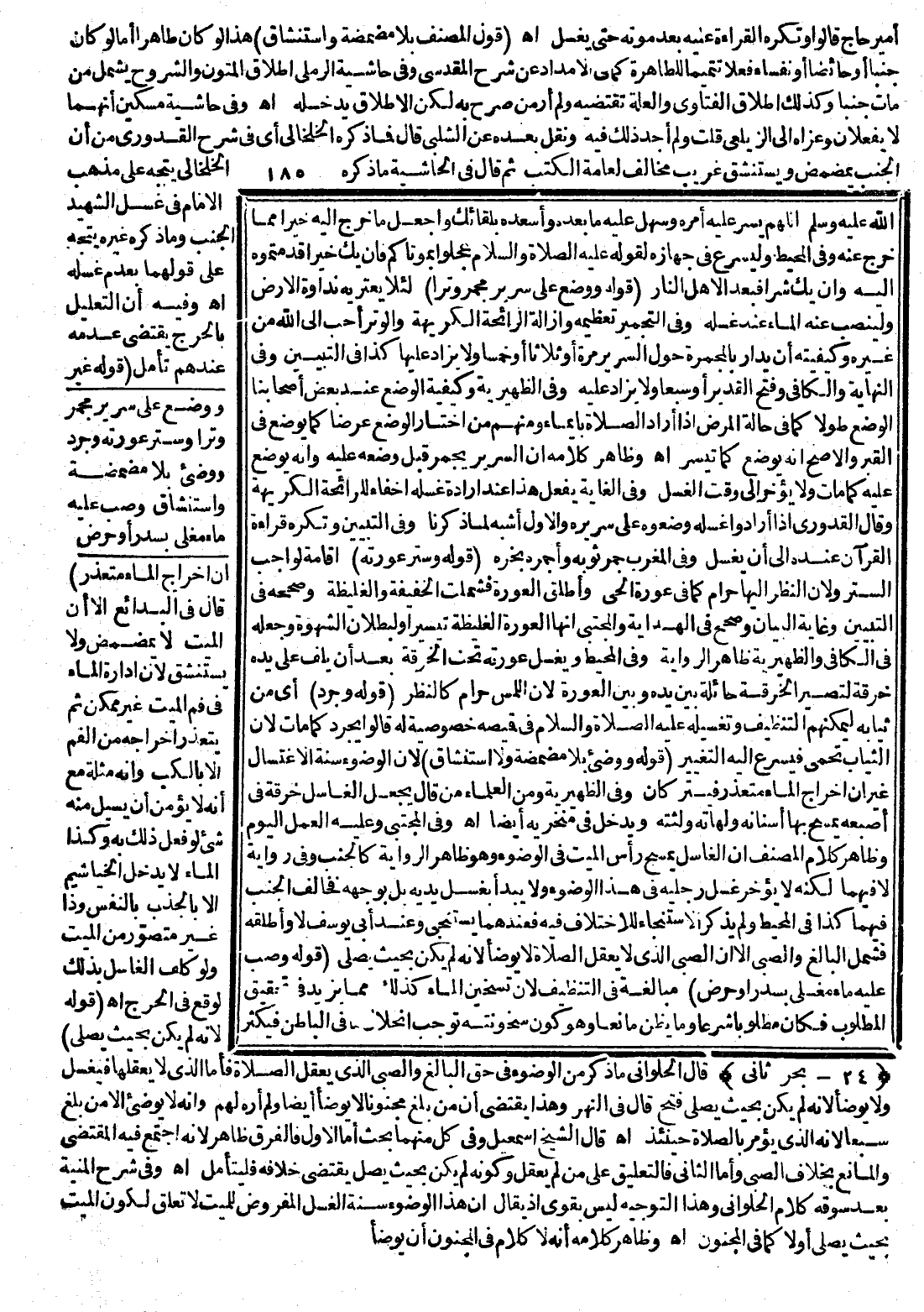 وَفِي حَاشِيَةِ مِسْكِينٍ أَنَّهُمَا لَا يُفْعَلَانِ وَعَزَاهُ إلَى الزَّيْلَعِيِّ قُلْتُ: وَلَمْ أَجِدْ ذَلِكَ فِيهِ وَنُقِلَ بَعْدَهُ عَنْ الشَّلَبِيِّ قَالَ فَمَا ذَكَرَهُ الْخَلْخَالِيُّ أَيْ فِي شَرْحِ الْقُدُورِيِّ مِنْ أَنَّ الْجُنُبَ يُمَضْمَضُ وَيُسْتَنْشَقُ غَرِيبٌ مُخَالِفٌ لِعَامَّةِ الْكُتُبِ ثُمَّ قَالَ فِي الْحَاشِيَةِ مَا ذَكَرَهُ الْخَلْخَالِيُّ يُتَّجَهُ عَلَى مَذْهَبِ الْإِمَامِ فِي غَسْلِ الشَّهِيدِ الْجُنُبِ، وَمَا ذَكَرَهُ غَيْرُهُ يُتَّجَهُ عَلَى قَوْلِهِمَا بِعَدَمِ غَسْلِهِ. اهـ وَفِيهِ أَنَّ التَّعْلِيلَ بِالْحَرَجِ يَقْتَضِي عَدَمَهُ عِنْدَهُمْ تَأَمَّلْ
