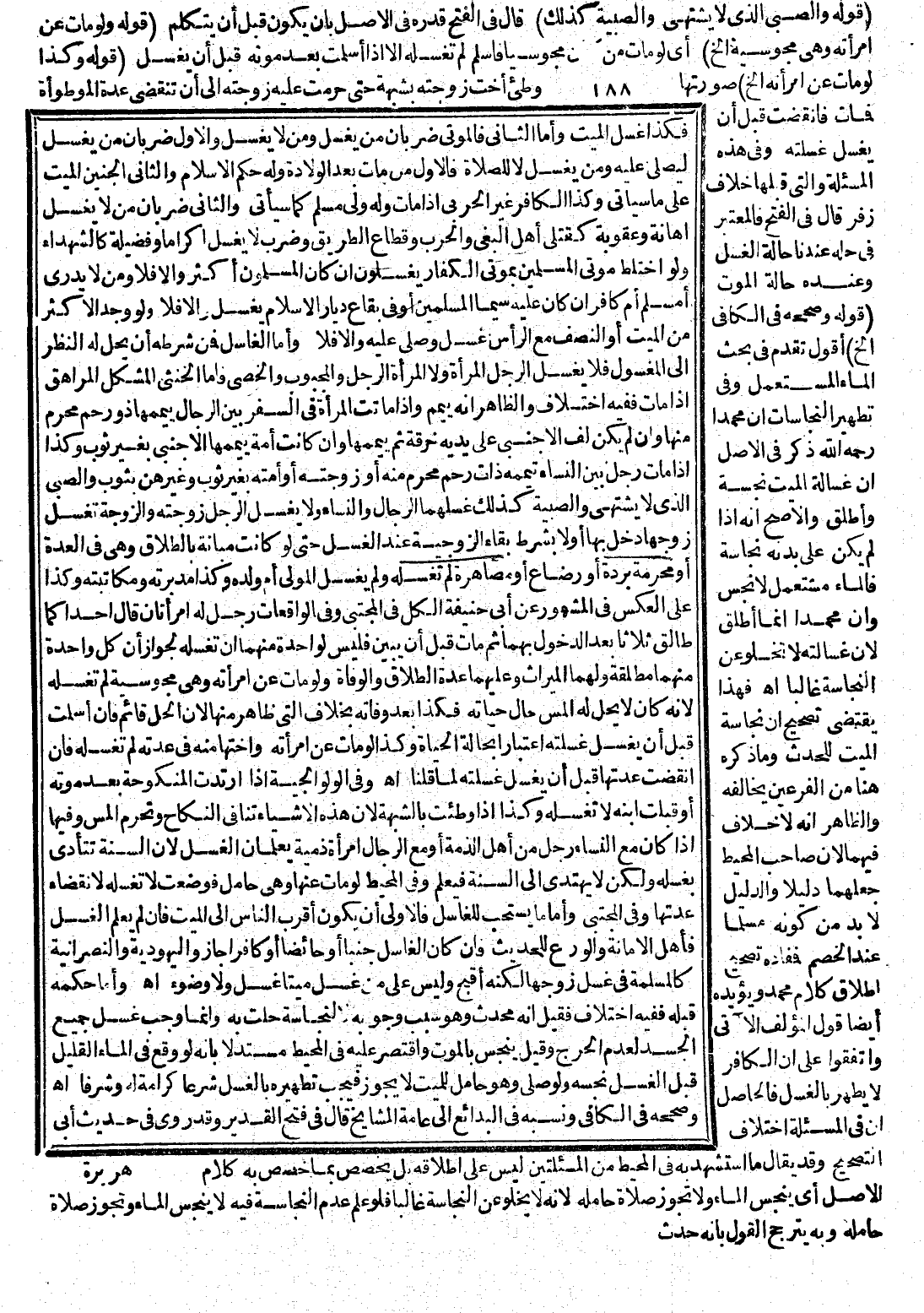فَهَذَا يَقْتَضِي تَصْحِيحَ أَنَّ نَجَاسَةَ الْمَيِّتِ لِلْحَدَثِ، وَمَا ذَكَرَهُ هُنَا مِنْ الْفَرْعَيْنِ يُخَالِفُهُ وَالظَّاهِرُ أَنَّهُ لَا خِلَافَ فِيهِمَا؛ لِأَنَّ صَاحِبَ الْمُحِيطِ جَعَلَهُمَا دَلِيلًا وَالدَّلِيلُ لَا بُدَّ مِنْ كَوْنِهِ مُسَلَّمًا عِنْدَ الْخَصْمِ فَمُفَادُهُ تَصْحِيحُ إطْلَاقِ كَلَامِ مُحَمَّدٍ وَيُؤَيِّدُهُ أَيْضًا قَوْلُ الْمُؤَلِّفِ الْآتِي وَاتَّفَقُوا عَلَى أَنَّ الْكَافِرَ لَا يَطْهُرُ بِالْغُسْلِ فَالْحَاصِلُ أَنَّ فِي الْمَسْأَلَةِ اخْتِلَافَ التَّصْحِيحِ
