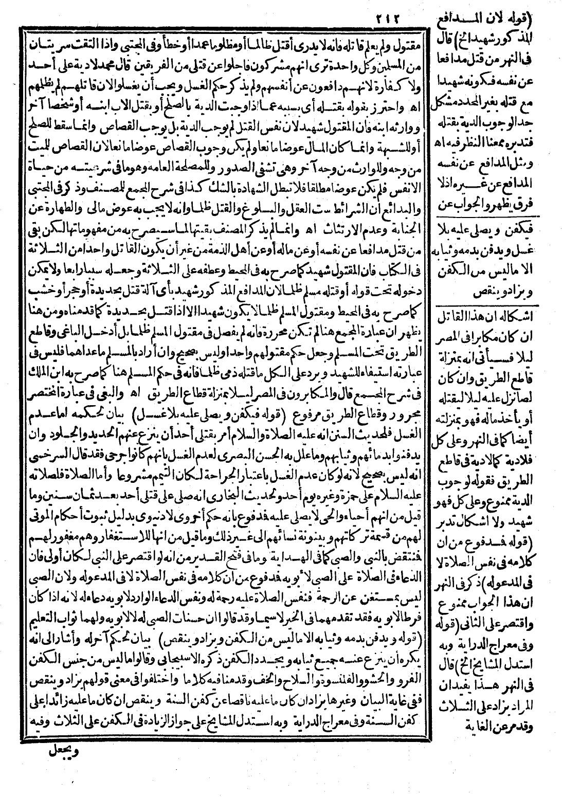 ـــــــــــــــــــــــــــــQ (قَوْلُهُ؛ لِأَنَّ الْمُدَافِعَ الْمَذْكُورَ شَهِيدٌ إلَخْ) قَالَ فِي النَّهْرِ مَنْ قُتِلَ مُدَافِعًا عَنْ نَفْسِهِ فَكَوْنُهُ شَهِيدًا مَعَ قَتْلِهِ بِغَيْرِ الْمُحَدَّدِ مُشْكِلٌ جِدًّا لِوُجُوبِ الدِّيَةِ بِقَتْلِهِ فَتَدَبَّرْهُ مُمْعِنًا النَّظَرَ فِيهِ. اهـ.