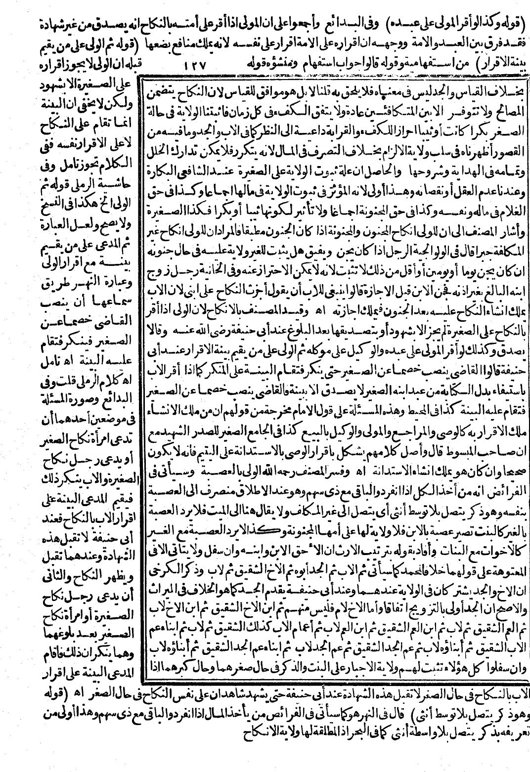 ـــــــــــــــــــــــــــــQ (قَوْلُهُ: وَكَذَا لَوْ أَقَرَّ الْمَوْلَى عَلَى عَبْدِهِ) وَفِي الْبَدَائِعِ وَأَجْمَعُوا عَلَى أَنَّ الْمَوْلَى إذَا أَقَرَّ عَلَى أَمَتِهِ بِالنِّكَاحِ أَنَّهُ يُصَدَّقُ مِنْ غَيْرِ شَهَادَةٍ فَقَدْ فَرَّقَ بَيْنَ الْعَبْدِ وَالْأَمَةِ، وَوَجْهُهُ أَنَّ إقْرَارَهُ عَلَى الْأَمَةِ إقْرَارٌ عَلَى نَفْسِهِ؛ لِأَنَّهُ يَمْلِكُ مَنَافِعَ بُضْعِهَا. (قَوْلُهُ ثُمَّ الْمَوْلَى عَلَى مَنْ يُقِيمُ بَيِّنَةَ الْإِقْرَارِ) مَنْ اسْتِفْهَامِيَّةٌ، وَقَوْلُهُ قَالُوا جَوَابُ اسْتِفْهَامٍ وَمَنْشَؤُهُ قَوْلُهُ قَبْلَهُ إنَّ الْوَلِيَّ لَا يَجُوزُ إقْرَارُهُ عَلَى الصَّغِيرَةِ إلَّا بِشُهُودٍ وَلَكِنْ لَا يَخْفَى أَنَّ الْبَيِّنَةَ إنَّمَا تُقَامُ عَلَى النِّكَاحِ لَا عَلَى الْإِقْرَارِ نَفْسِهِ فَفِي الْكَلَامِ تَجَوُّزٌ تَأَمَّلْ وَفِي حَاشِيَةِ الرَّمْلِيِّ قَوْلُهُ ثُمَّ الْوَلِيُّ إلَخْ هَكَذَا فِي النُّسَخِ وَلَا يَصِحُّ وَلَعَلَّ الْعِبَارَةَ ثُمَّ الْمُدَّعِي عَلَى مَنْ يُقِيمُ بَيِّنَةً مَعَ إقْرَارِ الْوَلِيِّ وَعِبَارَةُ النَّهْرِ طَرِيقُ سَمَاعِهَا أَنْ يُنَصِّبَ الْقَاضِي خَصْمًا عَنْ الصَّغِيرِ فَيُنْكِرَ فَتُقَامَ عَلَيْهِ الْبَيِّنَةُ اهـ. تَأَمَّلْ كَلَامَ الرَّمْلِيِّ.