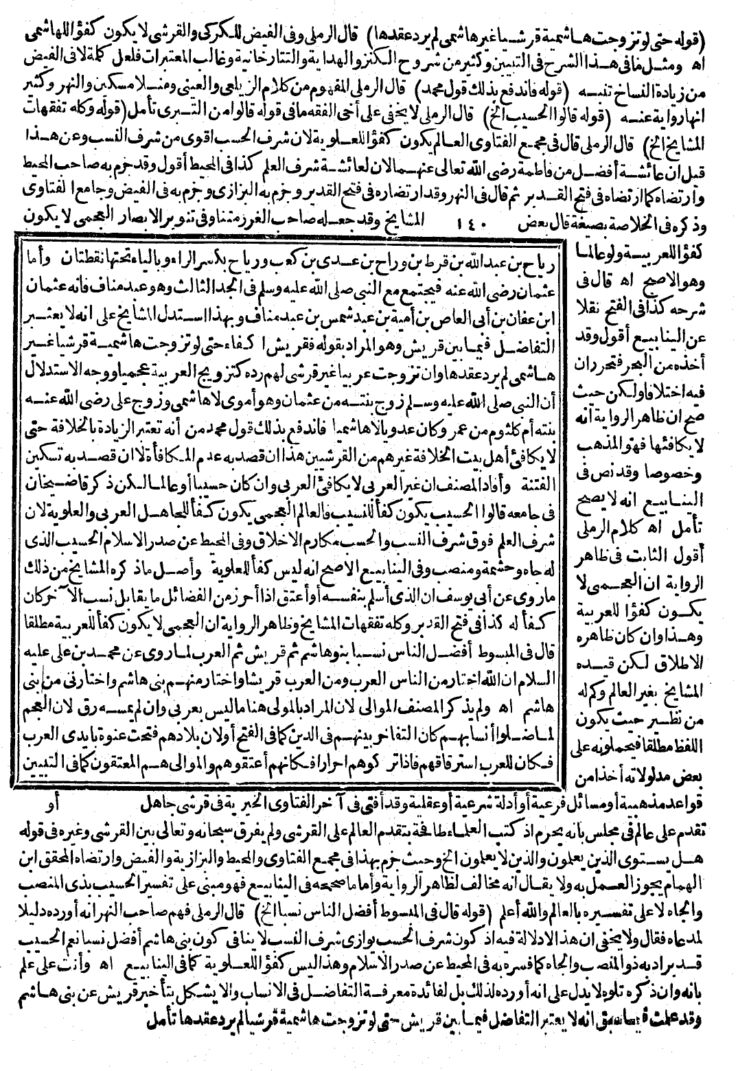 وَأَنْتَ عَلَى عِلْمٍ بِأَنَّهُ وَإِنْ ذَكَرَهُ تِلْوَهُ لَا يَدُلُّ عَلَى أَنَّهُ أَوْرَدَهُ لِذَلِكَ بَلْ لِفَائِدَةِ مَعْرِفَةِ التَّفَاضُلِ فِي الْأَنْسَابِ وَإِلَّا يُشْكِلُ بِتَأْخِيرِ قُرَيْشٍ عَنْ بَنِي هَاشِمٍ، وَقَدْ عَلِمْت فِيمَا سَبَقَ أَنَّهُ لَا يُعْتَبَرُ التَّفَاضُلُ فِيمَا بَيْنَ قُرَيْشٍ حَتَّى لَوْ تَزَوَّجَتْ هَاشِمِيَّةٌ قُرَشِيًّا لَمْ يُرَدَّ عَقْدُهَا تَأَمَّلْ