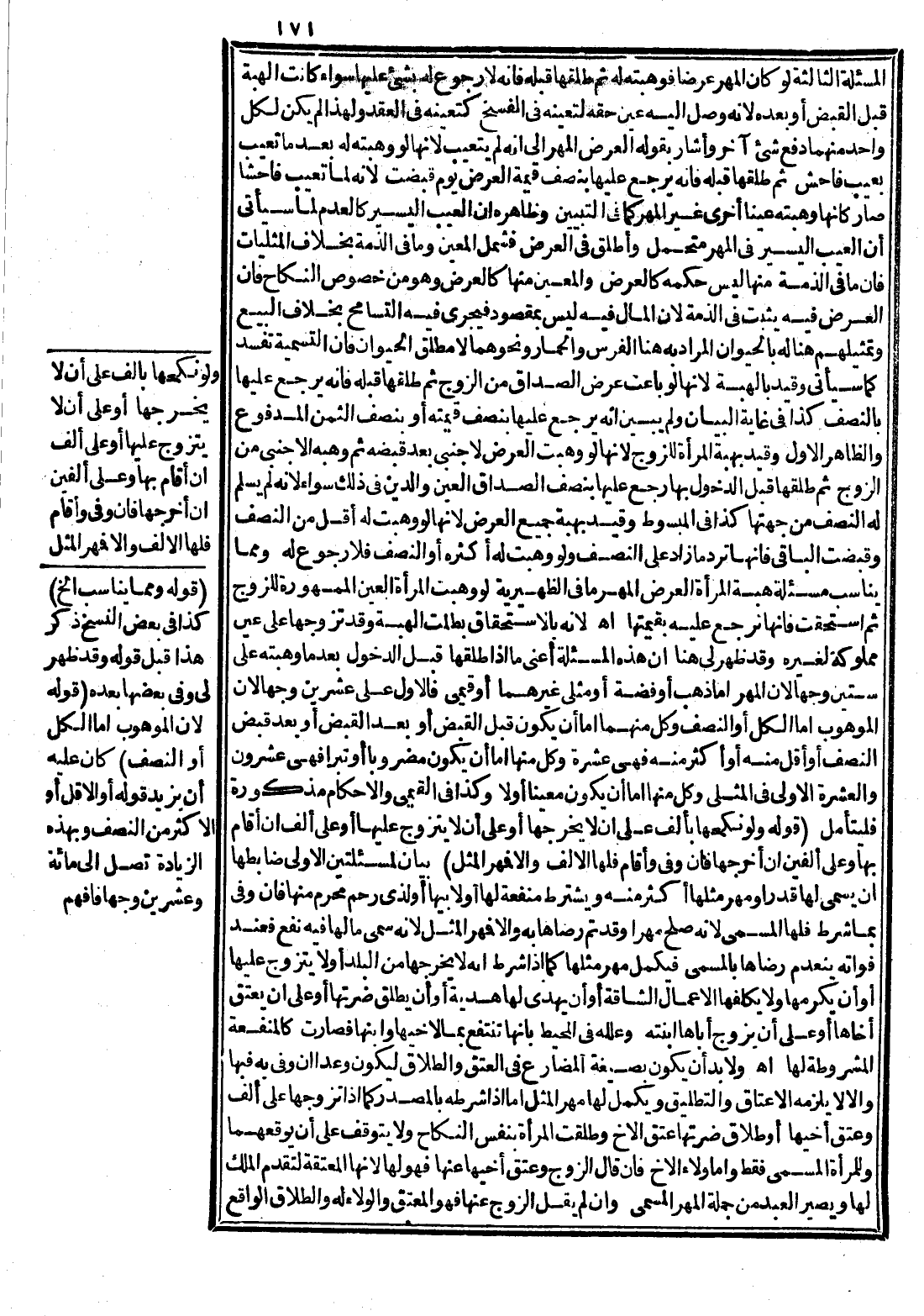 (قَوْلُهُ وَلَوْ نَكَحَهَا بِأَلْفٍ عَلَى أَنْ لَا يُخْرِجَهَا أَوْ عَلَى أَنْ لَا يَتَزَوَّجَ عَلَيْهَا أَوْ عَلَى أَلْفٍ إنْ أَقَامَ بِهَا وَعَلَى أَلْفَيْنِ إنْ أَخْرَجَهَا فَإِنْ وَفَى وَأَقَامَ فَلَهَا الْأَلْفُ وَإِلَّا فَمَهْرُ الْمِثْلِ) بَيَانُ الْمَسْأَلَتَيْنِ الْأُولَى ضَابِطُهَا أَنْ يُسَمِّيَ لَهَا قَدْرًا وَمَهْرُ مِثْلِهَا أَكْثَرُ مِنْهُ وَيُشْتَرَطُ مَنْفَعَةٌ لَهَا أَوْ لِأَبِيهَا أَوْ لِذِي رَحِمٍ مَحْرَمٍ مِنْهَا فَإِنْ وَفَى بِمَا شُرِطَ فَلَهَا الْمُسَمَّى؛ لِأَنَّهُ صَلُحَ مَهْرًا، وَقَدْ تَمَّ رِضَاهَا بِهِ وَإِلَّا فَمَهْرُ الْمِثْلِ؛ لِأَنَّهُ سَمَّى مَا لَهَا فِيهِ نَفْعٌ فَعِنْدَ فَوَاتِهِ يَنْعَدِمُ رِضَاهَا بِالْمُسَمَّى فَيَكْمُلُ مَهْرُ مِثْلِهَا كَمَا إذَا شَرَطَ أَنَّهُ لَا يُخْرِجُهَا مِنْ الْبَلَدِ أَوْ لَا يَتَزَوَّجُ عَلَيْهَا أَوْ أَنْ يُكْرِمَهَا وَلَا يُكَلِّفُهَا الْأَعْمَالَ الشَّاقَّةَ أَوْ أَنْ يُهْدِيَ لَهَا هَدِيَّةً أَوْ أَنْ يُطَلِّقَ ضَرَّتَهَا أَوْ عَلَى أَنْ يُعْتِقَ أَخَاهَا أَوْ عَلَى أَنْ يُزَوِّجَ أَبَاهَا ابْنَتَهُ وَعَلَّلَهُ فِي الْمُحِيطِ بِأَنَّهَا تَنْتَفِعُ بِمَا لِأَخِيهَا وَابْنِهَا فَصَارَتْ كَالْمَنْفَعَةِ الْمَشْرُوطَةِ لَهَا اهـ.