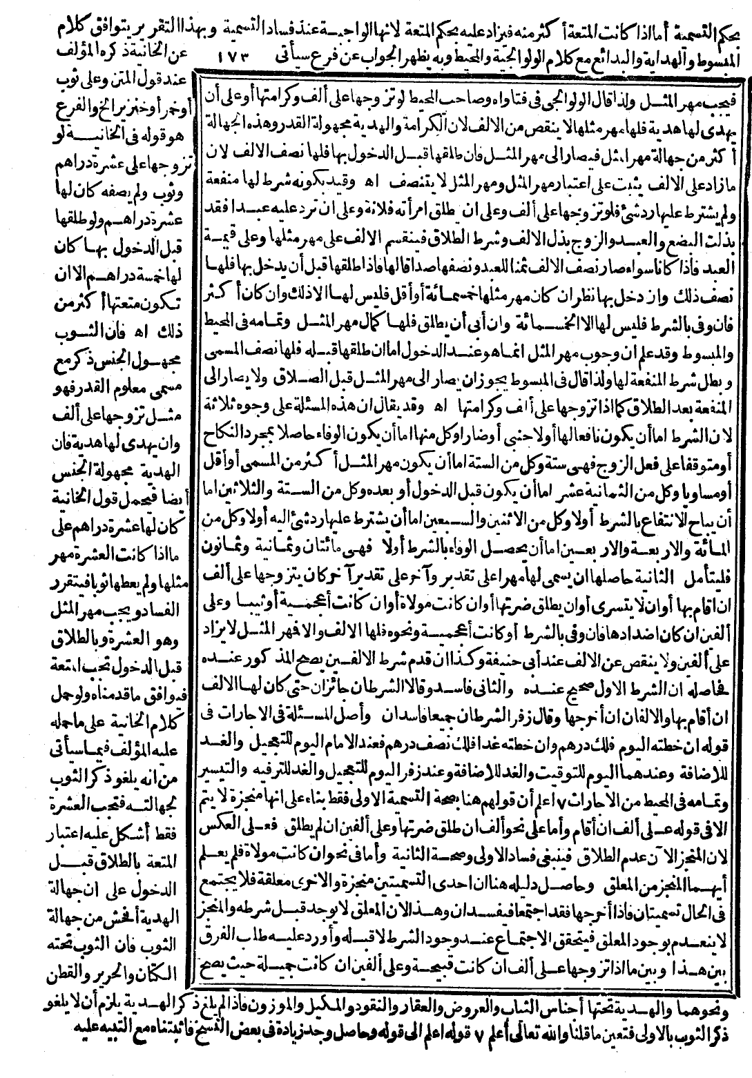 وَقَدْ يُقَالُ إنَّ هَذِهِ الْمَسْأَلَةَ عَلَى وُجُوهٍ ثَلَاثَةٍ؛ لِأَنَّ الشَّرْطَ إمَّا أَنْ يَكُونَ نَافِعًا لَهَا أَوْ لِأَجْنَبِيٍّ أَوْ ضَارًّا وَكُلٌّ مِنْهَا إمَّا أَنْ يَكُونَ الْوَفَاءُ حَاصِلًا بِمُجَرَّدِ النِّكَاحِ أَوْ مُتَوَقِّفًا عَلَى فِعْلِ الزَّوْجِ فَهِيَ سِتَّةٌ وَكُلٌّ مِنْ السِّتَّةِ إمَّا أَنْ يَكُونَ مَهْرُ الْمِثْلِ أَكْثَرَ مِنْ الْمُسَمَّى أَوْ أَقَلَّ أَوْ مُسَاوِيًا وَكُلٌّ مِنْ الثَّمَانِيَةَ عَشَرَ إمَّا أَنْ يَكُونَ قَبْلَ الدُّخُولِ أَوْ بَعْدَهُ وَكُلٌّ مِنْ السِّتَّةِ وَالثَّلَاثِينَ إمَّا أَنْ يُبَاحَ الِانْتِفَاعُ بِالشَّرْطِ أَوْ لَا وَكُلٌّ مِنْ الِاثْنَيْنِ وَالسَّبْعِينَ إمَّا أَنْ يُشْتَرَطَ عَلَيْهَا رَدُّ شَيْءٍ إلَيْهِ أَوْ لَا وَكُلٌّ مِنْ الْمِائَةِ وَالْأَرْبَعَةِ وَالْأَرْبَعِينَ إمَّا أَنْ يَحْصُلَ الْوَفَاءُ بِالشَّرْطِ أَوْ لَا فَهِيَ مِائَتَانِ وَثَمَانِيَةٌ وَثَمَانُونَ فَلْيُتَأَمَّلْ الثَّانِيَةُ حَاصِلُهَا أَنْ يُسَمِّيَ لَهَا مَهْرًا عَلَى تَقْدِيرٍ وَآخَرَ عَلَى تَقْدِيرٍ آخَرَ كَأَنْ يَتَزَوَّجَهَا عَلَى أَلْفٍ إنْ أَقَامَ بِهَا أَوْ أَنْ لَا يَتَسَرَّى أَوْ أَنْ يُطَلِّقَ ضَرَّتَهَا أَوْ إنْ كَانَتْ مَوْلَاةً أَوْ إنْ كَانَتْ أَعْجَمِيَّةً أَوْ ثَيِّبًا وَعَلَى أَلْفَيْنِ إنْ كَانَ أَضْدَادُهَا فَإِنْ وَفَى بِالشَّرْطِ أَوْ كَانَتْ أَعْجَمِيَّةً وَنَحْوَهُ فَلَهَا الْأَلْفُ وَإِلَّا فَمَهْرُ الْمِثْلِ لَا يُزَادُ عَلَى أَلْفَيْنِ وَلَا يَنْقُصُ عَنْ الْأَلْفِ عِنْدَ أَبِي حَنِيفَةَ، وَكَذَا إنْ قُدِّمَ شَرْطُ الْأَلْفَيْنِ يَصِحُّ الْمَذْكُورُ عِنْدَهُ فَحَاصِلُهُ أَنَّ الشَّرْطَ الْأَوَّلَ صَحِيحٌ عِنْدَهُ وَالثَّانِي فَاسِدٌ وَقَالَا الشَّرْطَانِ جَائِزَانِ حَتَّى كَانَ لَهَا الْأَلْفُ إنْ أَقَامَ وَالْأَلْفَانِ إنْ أَخْرَجَهَا وَقَالَ زُفَرُ الشَّرْطَانِ جَمِيعًا فَاسِدَانِ وَأَصْلُ الْمَسْأَلَةِ فِي الْإِجَارَاتِ فِي قَوْلِهِ إنْ خَطَّتْهُ الْيَوْمَ فَلَكَ دِرْهَمٌ وَإِنْ خَطَّتْهُ غَدًا فَلَكَ نِصْفُ دِرْهَمٍ فَعِنْدَ الْإِمَامِ الْيَوْمُ لِلتَّعْجِيلِ وَالْغَدُ لِلْإِضَافَةِ وَعِنْدَهُمَا الْيَوْمُ لِلتَّوْقِيتِ وَالْغَدُ لِلْإِضَافَةِ