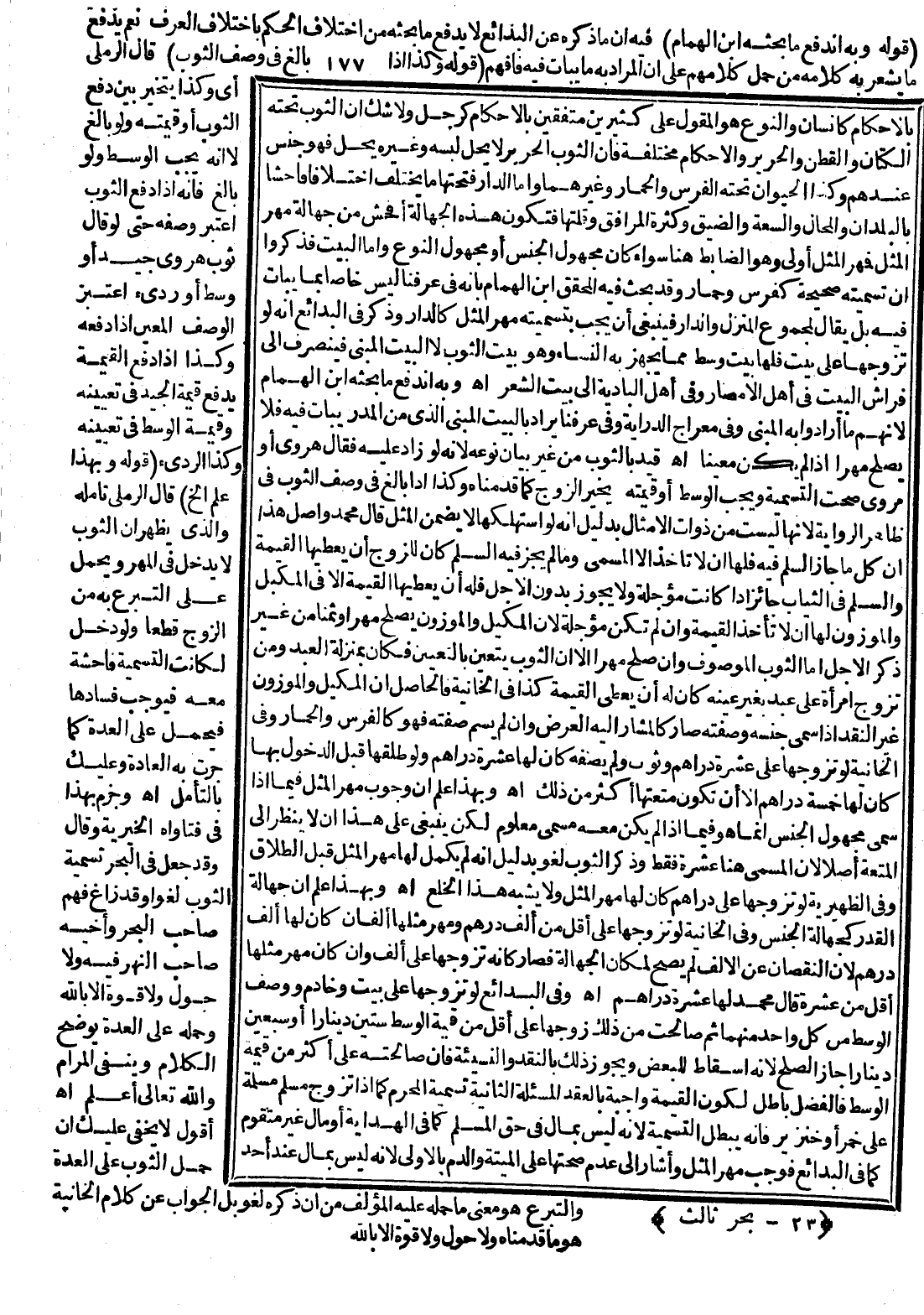 بِالْأَحْكَامِ كَإِنْسَانٍ وَالنَّوْعُ هُوَ الْمَقُولُ عَلَى كَثِيرِينَ مُتَّفِقِينَ بِالْأَحْكَامِ كَرَجُلٍ وَلَا شَكَّ أَنَّ الثَّوْبَ تَحْتَهُ - الْكَتَّانُ وَالْقُطْنُ وَالْحَرِيرُ وَالْأَحْكَامُ مُخْتَلِفَةٌ فَإِنَّ الثَّوْبَ الْحَرِيرَ لَا يَحِلُّ لُبْسُهُ وَغَيْرُهُ يَحِلُّ فَهُوَ جِنْسٌ عِنْدَهُمْ، وَكَذَا الْحَيَوَانُ تَحْتَهُ الْفَرَسُ وَالْحِمَارُ وَغَيْرُهُمَا، وَأَمَّا الدَّارُ فَتَحْتَهَا مَا يَخْتَلِفُ اخْتِلَافًا فَاحِشًا بِالْبُلْدَانِ وَالْمَحَالِّ وَالسَّعَةِ وَالضِّيقِ وَكَثْرَةِ الْمَرَافِقِ وَقِلَّتِهَا فَتَكُونُ هَذِهِ الْجَهَالَةُ أَفْحَشَ مِنْ جَهَالَةِ مَهْرِ الْمِثْلِ فَمَهْرُ الْمِثْلِ أَوْلَى وَهُوَ الضَّابِطُ هُنَا سَوَاءٌ كَانَ مَجْهُولَ الْجِنْسِ أَوْ مَجْهُولَ النَّوْعِ