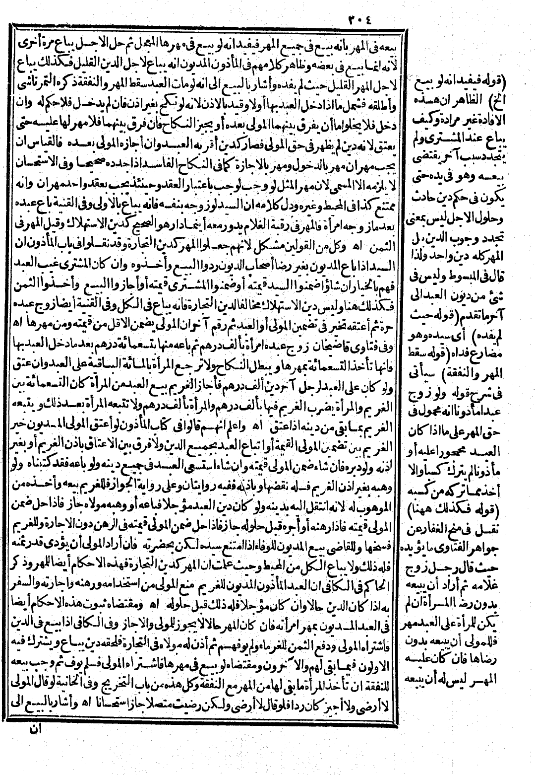 وَمُقْتَضَاهُ ثُبُوتُ هَذِهِ الْأَحْكَامِ أَيْضًا فِي الْعَبْدِ الْمَدْيُونِ بِمَهْرِ امْرَأَتِهِ فَإِنْ كَانَ الْمَهْرُ حَالًّا لَا يَجُوزُ لِلْمَوْلَى وَإِلَّا جَازَ وَفِي الْكَافِي إذَا بِيعَ فِي الدَّيْنِ فَاشْتَرَاهُ الْمَوْلَى وَدَفَعَ الثَّمَنَ لِلْغُرَمَاءِ وَلَمْ يُوَفِّهِمْ ثُمَّ أَذِنَ لَهُ مَوْلَاهُ فِي التِّجَارَةِ فَلَحِقَهُ دَيْنٌ يُبَاعُ وَيَشْتَرِكُ فِيهِ الْأَوَّلُونَ فِيمَا بَقِيَ لَهُمْ، وَالْآخَرُونَ وَمُقْتَضَاهُ لَوْ بِيعَ فِي مَهْرِهَا فَاشْتَرَاهُ الْمَوْلَى فَلَمْ يُوفِ ثُمَّ وَجَبَ بَيْعُهُ لِلنَّفَقَةِ أَنْ تَأْخُذَ الْمَرْأَةُ مَا بَقِيَ لَهَا مِنْ الْمَهْرِ مَعَ النَّفَقَةِ وَكُلُّ هَذِهِ مِنْ بَابِ التَّخْرِيجِ وَفِي الْخَانِيَّةِ لَوْ قَالَ الْمَوْلَى: لَا أَرْضَى وَلَا أُجِيزُ كَانَ رَدًّا فَلَوْ قَالَ لَا أَرْضَى وَلَكِنْ رَضِيت مُتَّصِلًا جَازَ اسْتِحْسَانًا اهـ.
