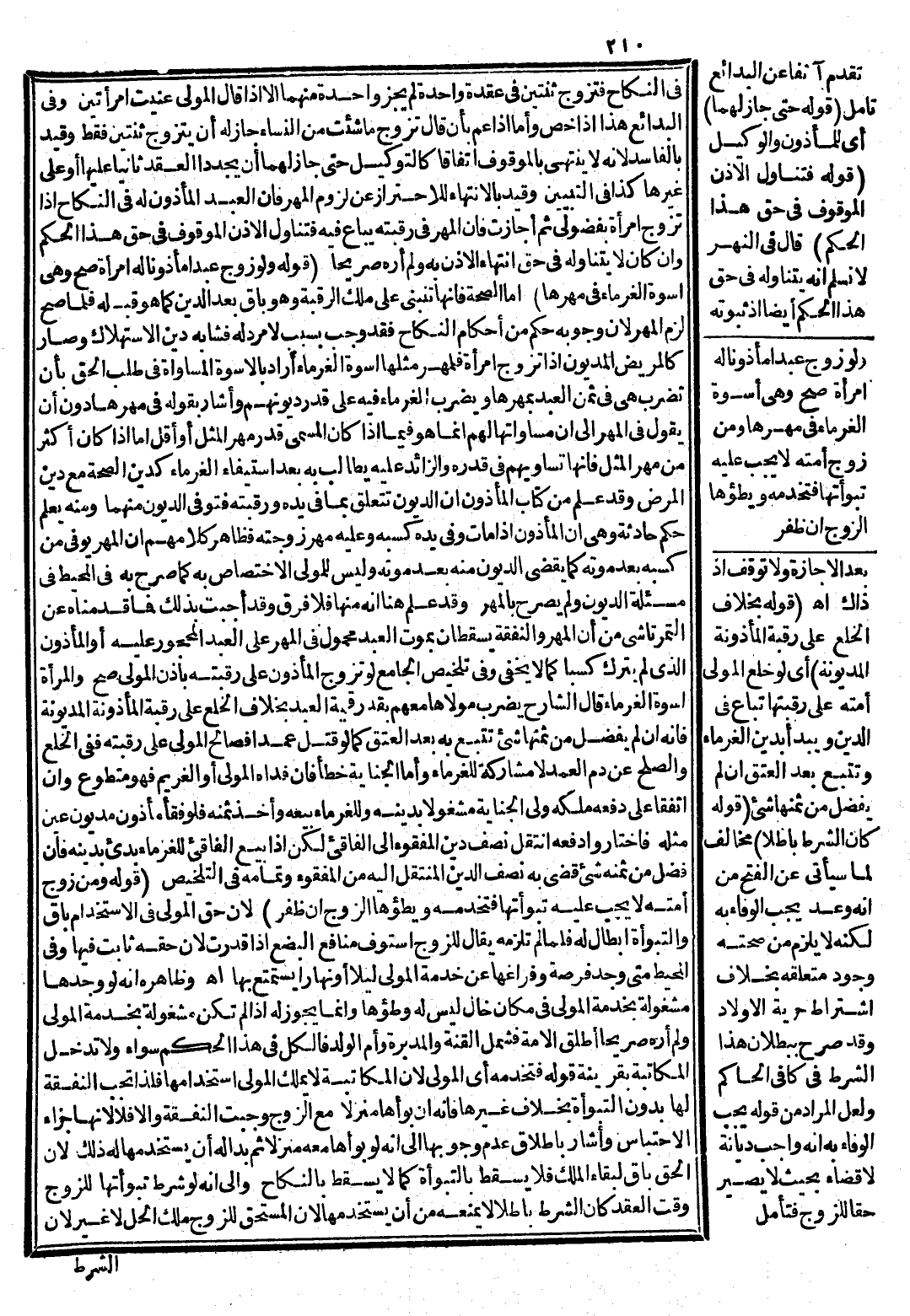 (قَوْلُهُ: وَلَوْ زَوَّجَ عَبْدًا مَأْذُونًا لَهُ امْرَأَةٌ صَحَّ وَهِيَ أُسْوَةُ الْغُرَمَاءِ فِي مَهْرِهَا) أَمَّا الصِّحَّةُ فَإِنَّهَا تَنْبَنِي عَلَى مِلْكِ الرَّقَبَةِ، وَهُوَ بَاقٍ بَعْدَ الدَّيْنِ كَمَا هُوَ قَبْلَهُ فَلَمَّا صَحَّ لَزِمَ الْمَهْرُ لِأَنَّ وُجُوبَهُ حُكْمٌ مِنْ أَحْكَامِ النِّكَاحِ فَقَدْ وَجَبَ بِسَبَبٍ لَا مَرَدَّ لَهُ فَشَابَهُ دَيْنَ الِاسْتِهْلَاكِ، وَصَارَ كَالْمَرِيضِ الْمَدْيُونِ إذَا تَزَوَّجَ امْرَأَةً فَلِمَهْرِ مِثْلِهَا أُسْوَةُ الْغُرَمَاءِ أَرَادَ بِالْأُسْوَةِ الْمُسَاوَاةَ فِي طَلَبِ الْحَقِّ بِأَنْ تَضْرِبَ هِيَ فِي ثَمَنِ الْعَبْدِ بِمَهْرِهَا، وَيَضْرِبَ الْغُرَمَاءُ فِيهِ عَلَى قَدْرِ دُيُونِهِمْ وَأَشَارَ بِقَوْلِهِ فِي مَهْرِهَا دُونَ أَنْ يَقُولَ فِي الْمَهْرِ إلَى أَنَّ مُسَاوَاتَهَا لَهُمْ إنَّمَا هُوَ فِيمَا إذَا كَانَ الْمُسَمَّى قَدْرَ مَهْرِ الْمِثْلِ أَوْ أَقَلَّ أَمَّا إذَا كَانَ أَكْثَرَ مِنْ مَهْرِ الْمِثْلِ فَإِنَّهَا تُسَاوِيهِمْ فِي قَدْرِهِ، وَالزَّائِدُ عَلَيْهِ يُطَالَبُ بِهِ بَعْدَ اسْتِيفَاءِ الْغُرَمَاءِ كَدَيْنِ الصِّحَّةِ مَعَ دَيْنِ الْمَرَضِ، وَقَدْ عُلِمَ مِنْ كِتَابِ الْمَأْذُونِ أَنَّ الدُّيُونَ تَتَعَلَّقُ بِمَا فِي يَدِهِ وَرَقَبَتِهِ فَتُوَفَّى الدُّيُونُ مِنْهُمَا وَمِنْهُ يُعْلَمُ حُكْمُ حَادِثَةٍ وَهِيَ أَنَّ الْمَأْذُونَ إذَا مَاتَ، وَفِي يَدِهِ كَسْبُهُ وَعَلَيْهِ مَهْرُ زَوْجَتِهِ فَظَاهِرُ كَلَامِهِمْ أَنَّ الْمَهْرَ يُوَفَّى مِنْ كَسْبِهِ بَعْدَ مَوْتِهِ كَمَا يُقْضَى الدُّيُونُ مِنْهُ بَعْدَ مَوْتِهِ وَلَيْسَ لِلْمَوْلَى الِاخْتِصَاصُ بِهِ كَمَا صَرَّحَ بِهِ فِي الْمُحِيطِ فِي مَسْأَلَةِ الدُّيُونِ وَلَمْ يُصَرِّحْ بِالْمَهْرِ، وَقَدْ عُلِمَ هُنَا أَنَّهُ مِنْهَا فَلَا فَرْقَ، وَقَدْ أَجَبْت بِذَلِكَ فَمَا قَدَّمْنَاهُ عَنْ التُّمُرْتَاشِيِّ مِنْ أَنَّ الْمَهْرَ، وَالنَّفَقَةَ يَسْقُطَانِ بِمَوْتِ الْعَبْدِ مَحْمُولٌ فِي الْمَهْرِ عَلَى الْعَبْدِ الْمَحْجُورِ عَلَيْهِ أَوْ الْمَأْذُونِ الَّذِي لَمْ يَتْرُكْ كَسْبًا كَمَا لَا يَخْفَى، وَفِي تَلْخِيصِ الْجَامِعِ: لَوْ تَزَوَّجَ الْمَأْذُونُ عَلَى رَقَبَتِهِ بِإِذْنِ الْمَوْلَى صَحَّ، وَالْمَرْأَةُ أُسْوَةُ الْغُرَمَاءِ قَالَ الشَّارِحُ: يَضْرِبُ مَوْلَاهَا مَعَهُمْ بِقَدْرِ قِيمَةِ الْعَبْدِ بِخِلَافِ الْخُلْعِ عَلَى رَقَبَةِ الْمَأْذُونَةِ الْمَدْيُونَةِ فَإِنَّهُ إنْ لَمْ يَفْضُلْ مِنْ ثَمَنِهَا شَيْءٌ تَتْبَعُ بِهِ بَعْدَ الْعِتْقِ كَمَا لَوْ قَتَلَ عَمْدًا فَصَالَحَ الْمَوْلَى عَلَى رَقَبَتِهِ فَفِي الْخُلْعِ، وَالصُّلْحِ عَنْ دَمِ الْعَمْدِ لَا مُشَارَكَةَ لِلْغُرَمَاءِ، وَأَمَّا الْجِنَايَةُ خَطَأً فَإِنْ فَدَاهُ الْمَوْلَى أَوْ الْغَرِيمُ فَهُوَ مُتَطَوِّعٌ، وَإِنْ اتَّفَقَا عَلَى دَفْعِهِ مَلَكَهُ وَلِيُّ الْجِنَايَةِ مَشْغُولًا بِدَيْنِهِ وَلِلْغُرَمَاءِ بَيْعُهُ وَأَخْذُ ثَمَنِهِ فَلَوْ فَقَأَ مَأْذُونٌ مَدْيُونٌ عَيْنَ مِثْلِهِ فَاخْتَارُوا دَفْعَهُ انْتَقَلَ نِصْفُ دَيْنِ الْمَفْقُوءِ إلَى الْفَاقِئِ لَكِنْ إذَا بِيعَ الْفَاقِئُ لِلْغُرَمَاءِ بُدِئَ بِدَيْنِهِ فَإِنْ فَضَلَ مِنْ ثَمَنِهِ شَيْءٌ قُضِيَ بِهِ نِصْفُ الدَّيْنِ الْمُنْتَقِلِ إلَيْهِ مِنْ الْمَفْقُوءِ وَتَمَامُهُ فِي التَّلْخِيصِ.