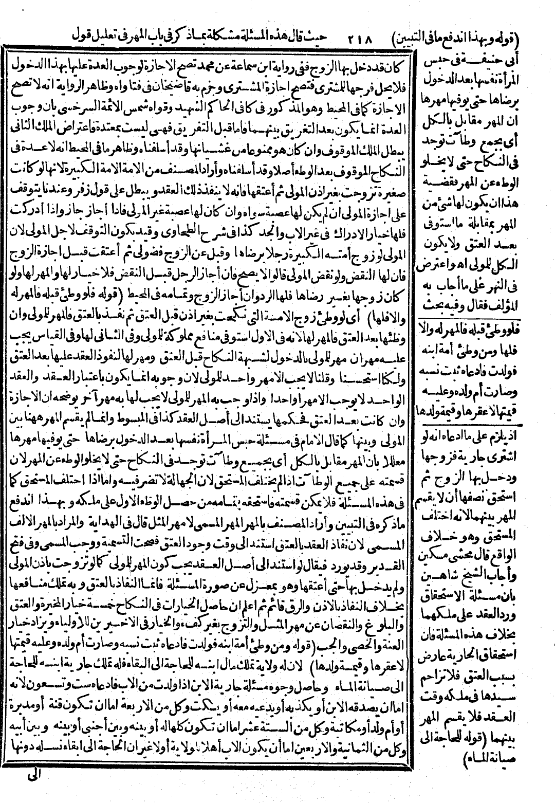 وَاعْتَرَضَ فِي النَّهْرِ عَلَى مَا أَجَابَ بِهِ الْمُؤَلِّفُ فَقَالَ: وَفِيهِ بَحْثٌ إذْ يَلْزَمُ عَلَى مَا ادَّعَاهُ أَنَّهُ لَوْ اشْتَرَى جَارِيَةً فَزَوَّجَهَا وَدَخَلَ بِهَا الزَّوْجُ ثُمَّ اسْتَحَقَّ نِصْفَهَا أَنْ لَا يَقْسِمَ الْمَهْرَ بَيْنَهُمَا لِأَنَّهُ اخْتَلَفَ الْمُسْتَحَقُّ وَهُوَ خِلَافُ الْوَاقِعِ قَالَ مُحَشِّي مِسْكِينٍ وَأَجَابَ الشَّيْخُ شَاهِينُ بِأَنَّ مَسْأَلَةَ الِاسْتِحْقَاقِ وَرَدَ بِالْعَقْدِ عَلَى مِلْكِهِمَا بِخِلَافِ هَذِهِ الْمَسْأَلَةِ فَإِنَّ اسْتِحْقَاقَ الْجَارِيَةِ عَارِضٌ بِسَبَبِ الْعِتْقِ فَلَا تُزَاحِمُ سَيِّدَهَا فِي مِلْكِهِ وَقْتَ الْعَقْدِ فَلَا يُقْسَمُ الْمَهْرُ بَيْنَهُمَا.