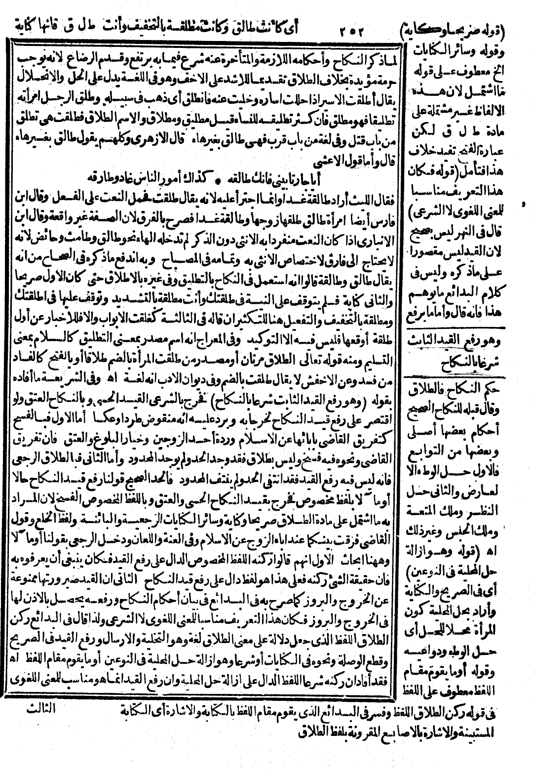 فَقَالَ اللَّيْثُ: أَرَادَ طَالِقَةً غَدًا وَإِنَّمَا اجْتَرَأَ عَلَيْهِ لِأَنَّهُ يُقَالُ طَلُقَتْ فَحُمِلَ النَّعْتُ عَلَى الْفِعْلِ، وَقَالَ ابْنِ فَارِسٍ: أَيْضًا امْرَأَةٌ طَالِقٌ طَلَّقَهَا زَوْجُهَا وَطَالِقَةٌ غَدًا فَصَرَّحَ بِالْفَرْقِ لِأَنَّ الصِّفَةَ غَيْرُ وَاقِعَةٍ، وَقَالَ ابْنُ الْأَنْبَارِيِّ إذَا كَانَ النَّعْتُ مُنْفَرِدًا بِهِ الْأُنْثَى دُونَ الذَّكَرِ لَمْ تَدْخُلْهُ الْهَاءُ نَحْوُ طَالِقٍ وَطَامِثٍ وَحَائِضٍ لِأَنَّهُ لَا يَحْتَاجُ إلَى فَارِقٍ لِاخْتِصَاصِ الْأُنْثَى بِهِ وَتَمَامُهُ فِي الْمِصْبَاحِ وَبِهِ انْدَفَعَ مَا ذَكَرَهُ فِي الصِّحَاحِ مِنْ أَنَّهُ يُقَالُ طَالِقٌ وَطَالِقَةٌ قَالُوا إنَّهُ اُسْتُعْمِلَ فِي النِّكَاحِ بِالتَّطْلِيقِ، وَفِي غَيْرِهِ بِالْإِطْلَاقِ حَتَّى كَانَ الْأَوَّلُ صَرِيحًا، وَالثَّانِي كِنَايَةً فَلَمْ يَتَوَقَّفْ عَلَى النِّيَّةِ فِي طَلَّقْتُك وَأَنْتِ مُطَلَّقَةٌ بِالتَّشْدِيدِ وَتَوَقَّفَ عَلَيْهَا فِي أَطْلَقْتُك وَمُطْلَقَةٌ بِالتَّخْفِيفِ، وَالتَّفْعِيلُ هُنَا لِلتَّكْثِيرِ إنْ قَالَهُ فِي الثَّالِثَةِ كَغَلَّقَتْ الْأَبْوَابَ وَإِلَّا فَلِلْإِخْبَارِ عَنْ أَوَّلِ طَلْقَةٍ أَوْقَعَهَا فَلَيْسَ فِيهِ إلَّا التَّوْكِيدُ، وَفِي الْمِعْرَاجِ أَنَّهُ اسْمُ مَصْدَرٍ بِمَعْنَى التَّطْلِيقِ كَالسَّلَامِ بِمَعْنَى التَّسْلِيمِ وَمِنْهُ قَوْله تَعَالَى {الطَّلاقُ مَرَّتَانِ} [البقرة: 229] أَوْ مَصْدَرٌ مِنْ طَلُقَتْ الْمَرْأَةُ بِالضَّمِّ طَلَاقًا أَوْ بِالْفَتْحِ كَالْفَسَادِ مِنْ فَسَدَ، وَعَنْ الْأَخْفَشِ لَا يُقَالُ طَلُقَتْ بِالضَّمِّ، وَفِي دِيوَانِ الْأَدَبِ أَنَّهُ لُغَةٌ اهـ.