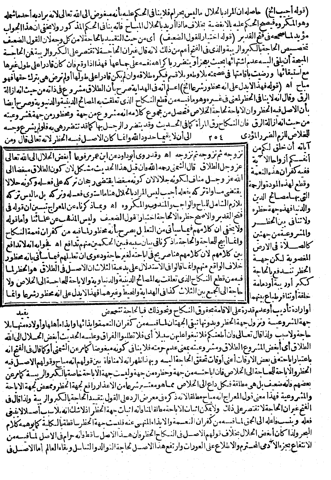 وَبِهَذَا ظَهَرَ أَنَّهُ لَا مُنَافَاةَ بَيْنَ قَوْلِهِمْ أَنَّهُ مُبَاحٌ وَقَوْلُهُمْ: الْأَصْلُ فِيهِ الْحَظْرُ، وَالْإِبَاحَةُ لِلْحَاجَةِ إلَى الْخَلَاصِ فَإِنَّ إبَاحَتَهُ مِنْ جِهَةٍ وَحَظْرَهُ مِنْ جِهَةٍ وَلَيْسَتْ جِهَةُ الْإِبَاحَةِ خَاصَّةً بِالْكِبَرِ، وَالرِّيبَةِ كَمَا مَرَّ عَنْ بَعْضِهِمْ فَإِنَّهُ ضَعِيفٌ بَلْ هِيَ مُطْلَقَةٌ فَكُلُّ دَاعٍ إلَى الْخَلَاصِ مِمَّا هُوَ مُعْتَبَرٌ شَرْعًا مِنْ الْأَعْذَارِ رَافِعٌ لِجِهَةِ الْحَظْرِ وَمُمَحِّضٌ لِجِهَةِ الْإِبَاحَةِ وَالْمَشْرُوعِيَّةِ فَهَذَا مَعْنَى قَوْلِ الْمِعْرَاجِ أَنَّهُ مُبَاحٌ مُطْلَقًا لِأَنَّهُ ذَكَرَهُ فِي مَعْرِضِ الرَّدِّ عَلَى الْقَوْلِ بِتَقْيِيدِ الْحَاجَةِ بِالْكِبَرِ، وَالرِّيبَةِ وَلِذَا قَالَ فِي الْفَتْحِ غَيْرَ أَنَّ الْحَاجَةَ لَا تَقْتَصِرُ عَلَى ذَلِكَ وَلَا يُمْكِنُ إثْبَاتُ الْإِبَاحَةِ مُطْلَقًا لِمُنَافَاتِهِ إثْبَاتَ جِهَةِ الْحَظْرِ إذْ لَا شَكَّ أَنَّهُ بِلَا سَبَبٍ أَصْلًا لَا يَنْبَغِي فِعْلُهُ وَيُنْسَبُ فَاعِلُهُ إلَى الْحُمْقِ لِمَا فِيهِ مِنْ كُفْرَانِ النِّعْمَةِ، وَالْإِيذَاءِ الْمَنْهِيِّ عَنْهُ فَلَيْسَتْ جِهَةُ الْحَظْرِ سَاقِطَةً بِالْكُلِّيَّةِ كَمَا يُوهِمُهُ كَلَامُ الْبَحْرِ وَلِذَا كَانَ أَبْغَضَ الْحَلَالِ بِخِلَافِ قَوْلِهِمْ الْأَصْلُ فِي النِّكَاحِ الْحَظْرُ فَإِنَّ هَذَا الْأَصْلَ سَاقِطٌ وَإِنَّهُ حَرَامٌ فِي الْأَصْلِ لِمَا فِيهِ مِنْ الِانْتِفَاعِ بِجُزْءِ الْآدَمِيِّ الْمُحْتَرَمِ، وَالِاطِّلَاعِ عَلَى الْعَوْرَاتِ وَارْتَفَعَ هَذَا الْأَصْلُ لِحَاجَةِ التَّوَالُدِ، وَالتَّنَاسُلِ وَبَقَاءِ الْعَالَمِ أَمَّا الْأَصْلُ فِي