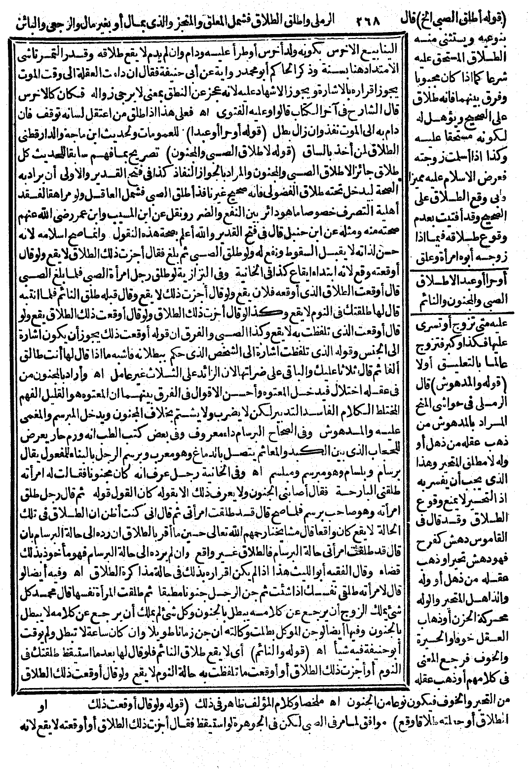قَوْلُهُ: (أَوْ حُرًّا أَوْ عَبْدًا) لِلْعُمُومَاتِ وَلِحَدِيثِ ابْنِ مَاجَهْ، وَالدَّارَقُطْنِيِّ «الطَّلَاقُ لِمَنْ أَخَذَ بِالسَّاقِ» قَوْلُهُ: (لَا طَلَاقَ الصَّبِيِّ، وَالْمَجْنُونِ) تَصْرِيحٌ بِمَا فُهِمَ سَابِقًا لِلْحَدِيثِ «كُلُّ طَلَاقٍ جَائِزٌ إلَّا طَلَاقَ الصَّبِيِّ، وَالْمَجْنُونِ» ، وَالْمُرَادُ بِالْجَوَازِ النَّفَاذُ كَذَا فِي فَتْحِ الْقَدِيرِ، وَالْأَوْلَى أَنْ يُرَادَ بِهِ الصِّحَّةُ لِيَدْخُلَ تَحْتَهُ طَلَاقُ الْفُضُولِيِّ فَإِنَّهُ صَحِيحٌ غَيْرُ نَافِذٍ أَطْلَقَ الصَّبِيَّ فَشَمَلَ الْعَاقِلَ وَلَوْ مُرَاهِقًا لِفَقْدِ أَهْلِيَّةِ التَّصَرُّفِ خُصُوصًا مَا هُوَ دَائِرٌ بَيْنَ النَّفْعِ، وَالضَّرَرِ وَنُقِلَ عَنْ ابْنِ الْمُسَيِّبِ وَابْنِ عُمَرَ - رَضِيَ اللَّهُ عَنْهُمْ - صِحَّتُهُ مِنْهُ وَمِثْلُهُ عَنْ ابْنِ حَنْبَلٍ قَالَ فِي فَتْحِ الْقَدِيرِ وَاَللَّهُ أَعْلَمُ بِصِحَّةِ هَذِهِ النُّقُولِ وَإِنَّمَا صَحَّ إسْلَامُهُ لِأَنَّهُ حَسَنٌ لِذَاتِهِ لَا يَقْبَلُ السُّقُوطَ وَنَفَعَ لَهُ وَلَوْ طَلَّقَ الصَّبِيُّ ثُمَّ بَلَغَ فَقَالَ أَجَزْت ذَلِكَ الطَّلَاقَ لَا يَقَعُ وَلَوْ قَالَ أَوْقَعْته وَقَعَ لِأَنَّهُ ابْتِدَاءُ إيقَاعٍ كَذَا فِي الْخَانِيَّةِ، وَفِي الْبَزَّازِيَّةِ: لَوْ طَلَّقَ رَجُلٌ امْرَأَةَ الصَّبِيِّ فَلَمَّا بَلَغَ الصَّبِيُّ قَالَ أَوْقَعْت الطَّلَاقَ الَّذِي أَوْقَعَهُ فُلَانٌ يَقَعُ وَلَوْ قَالَ أَجَزْت ذَلِكَ لَا يَقَعُ وَقَالَ قَبْلَهُ طَلَّقَ النَّائِمُ فَلَمَّا انْتَبَهَ قَالَ لَهَا طَلَّقْتُك فِي النَّوْمِ لَا يَقَعُ وَكَذَا لَوْ قَالَ أَجَزْت ذَلِكَ الطَّلَاقَ وَلَوْ قَالَ أَوْقَعْت ذَلِكَ الطَّلَاقَ يَقَعُ وَلَوْ قَالَ أَوْقَعْت الَّذِي تَلَفَّظْت بِهِ لَا يَقَعُ وَكَذَا الصَّبِيُّ، وَالْفَرْقُ أَنَّ قَوْلَهُ أَوْقَعْت ذَلِكَ يَجُوزُ أَنْ يَكُونَ إشَارَةً إلَى الْجِنْسِ وَقَوْلُهُ: الَّذِي تَلَفَّظْت إشَارَةٌ إلَى الشَّخْصِ الَّذِي حَكَمَ بِبُطْلَانِهِ فَأَشْبَهَ مَا إذَا قَالَ لَهَا: أَنْت طَالِقٌ أَلْفًا ثُمَّ قَالَ ثَلَاثًا عَلَيْك، وَالْبَاقِي عَلَى ضَرَّاتِهَا لِأَنَّ الزَّائِدَ عَلَى الثَّلَاثِ غَيْرُ عَامِلٍ اهـ.