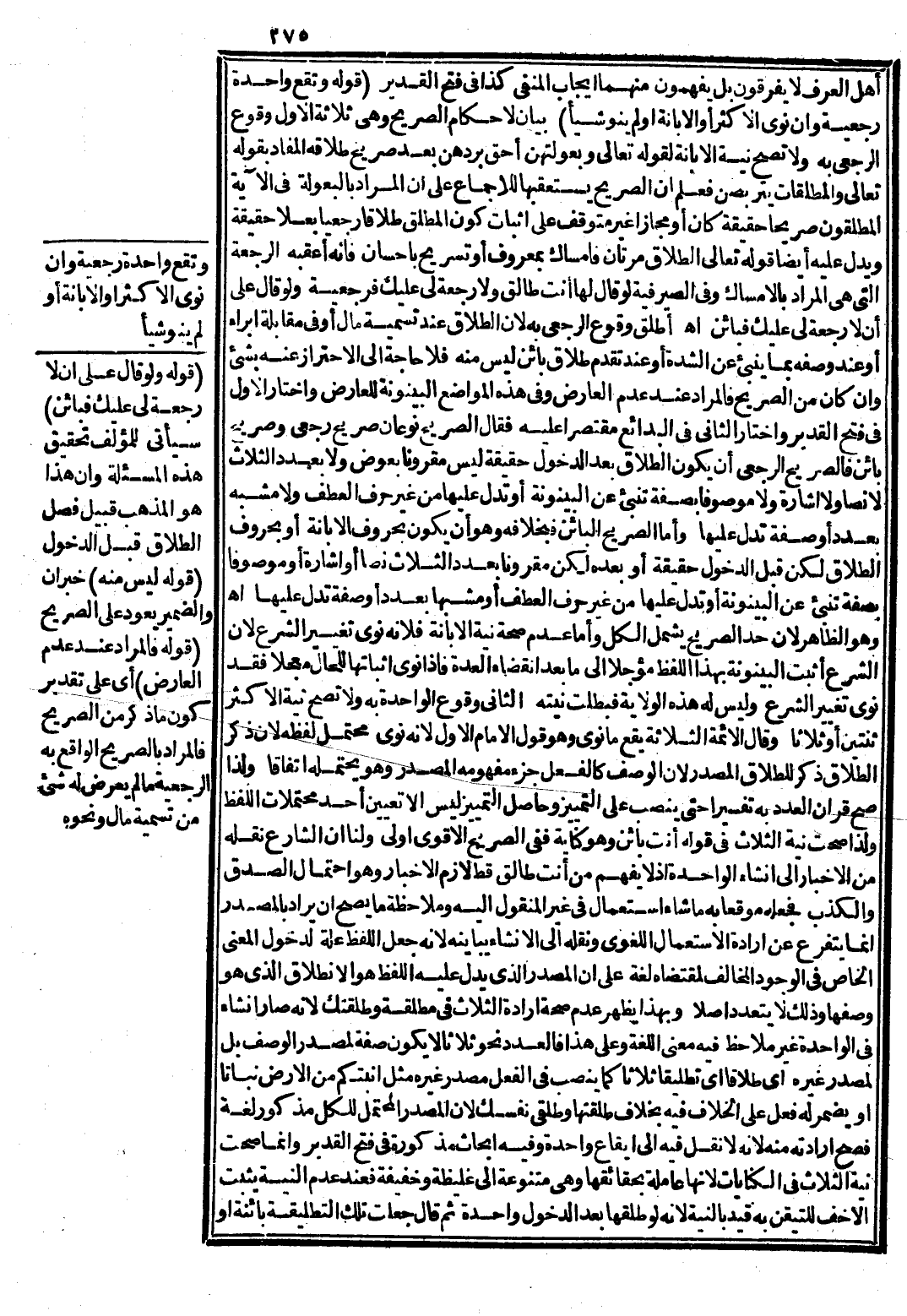 أَطْلَقَ وُقُوعَ الرَّجْعِيِّ بِهِ لِأَنَّ الطَّلَاقَ عِنْدَ تَسْمِيَةِ مَالٍ أَوْ فِي مُقَابَلَةِ إبْرَاءٍ أَوْ عِنْدَ وَصْفِهِ بِمَا يُنْبِئُ عَنْ الشِّدَّةِ أَوْ عِنْدَ تَقَدُّمِ طَلَاقٍ بَائِنٍ لَيْسَ مِنْهُ فَلَا حَاجَةَ إلَى الِاحْتِرَازِ عَنْهُ بِشَيْءٍ، وَإِنْ كَانَ مِنْ الصَّرِيحِ فَالْمُرَادُ عِنْدَ عَدَمِ الْعَارِضِ، وَفِي هَذِهِ الْمَوَاضِعِ الْبَيْنُونَةُ لِلْعَارِضِ وَاخْتَارَ الْأَوَّلَ فِي فَتْحِ الْقَدِيرِ وَاخْتَارَ الثَّانِي فِي الْبَدَائِعِ مُقْتَصِرًا عَلَيْهِ فَقَالَ: الصَّرِيحُ نَوْعَانِ صَرِيحٌ رَجْعِيٌّ وَصَرِيحٌ بَائِنٌ فَالصَّرِيحُ الرَّجْعِيُّ أَنْ يَكُونَ الطَّلَاقُ بَعْدَ الدُّخُولِ حَقِيقَةً لَيْسَ مَقْرُونًا بِعِوَضٍ وَلَا بِعَدَدِ الثَّلَاثِ لَا نَصًّا وَلَا إشَارَةً وَلَا مَوْصُوفًا بِصِفَةٍ تُنْبِئُ عَنْ الْبَيْنُونَةِ أَوْ تَدُلُّ عَلَيْهَا مِنْ غَيْرِ حَرْفِ الْعَطْفِ وَلَا مُشَبَّهٍ بِعَدَدٍ أَوْ صِفَةٍ تَدُلُّ عَلَيْهَا وَأَمَّا الصَّرِيحُ الْبَائِنُ فَبِخِلَافِهِ وَهُوَ أَنْ يَكُونَ بِحُرُوفِ الْإِبَانَةِ أَوْ بِحُرُوفِ الطَّلَاقِ لَكِنْ قَبْلَ الدُّخُولِ حَقِيقَةً أَوْ بَعْدَهُ لَكِنْ مَقْرُونًا بِعَدَدِ الثَّلَاثِ نَصًّا أَوْ إشَارَةً أَوْ مَوْصُوفًا بِصِفَةٍ تُنْبِئُ عَنْ الْبَيْنُونَةِ أَوْ تَدُلُّ عَلَيْهَا مِنْ غَيْرِ حَرْفِ الْعَطْفِ أَوْ مُشَبَّهًا بِعَدَدٍ أَوْ صِفَةٍ تَدُلُّ عَلَيْهَا اهـ.