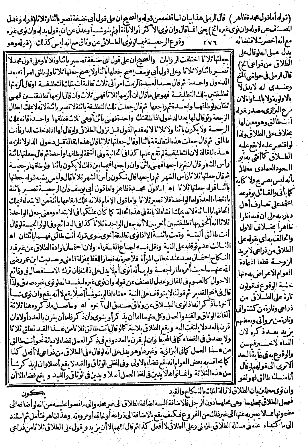 قَالَ الرَّمْلِيُّ فِي حَوَاشِي الْمِنَحِ وَعِنْدِي أَنَّهُ لَا يَدُلُّ لَا بِالْأَوْلَوِيَّةِ وَلَا بِالْمُسَاوَاةِ لِأَنَّ فَرْعَ الْبَزَّازِيِّ مَصْدَرٌ بِقَوْلِهِ أَنْتِ طَالِقٌ وَهُوَ مُعَيِّنٌ لَهَا بِخِلَافِ عَلَيَّ الطَّلَاقُ وَلِذَا لَوْ اقْتَصَرَ عَلَيْهِ لَا يَقَعُ عَلَيْهِ الطَّلَاقُ كَمَا أَفْتَى بِهِ أَبُو السُّعُودِ الْعِمَادِيُّ مُعَلِّلًا بِأَنَّهُ لَيْسَ بِصَرِيحٍ وَلَا كِنَايَةٍ كَمَا يَأْتِي، وَالْقَائِلُ بِوُقُوعِهِ اعْتَمَدَ عَلَى تَعَارُفِ أَهْلِ دِيَارِهِ بِهِ عَلَى أَنَّ فِيهِ نَظَرًا ظَاهِرًا بِخِلَافِ الْأَوَّلِ، وَالْحَالِفُ بِهِ أَيْ بِقَوْلِهِ عَلَيَّ الطَّلَاقُ مِنْ ذِرَاعِي لَا يُرِيدُ الزَّوْجَةَ قَطْعًا إذْ عَادَةُ الْعَوَامّ الْإِعْرَاضُ بِهِ عَنْهَا خَشْيَةِ الْوُقُوعِ فَيَقُولُونَ تَارَةً عَلَيَّ الطَّلَاقُ مِنْ ذِرَاعِي وَتَارَةً مِنْ كشتواني وَتَارَةً مِنْ مُرُوءَتِي وَبَعْضُهُمْ يَزِيدُ بَعْدَ ذِكْرِهِ لِأَنَّ النِّسَاءَ لَا خَيْرَ فِيهِنَّ.