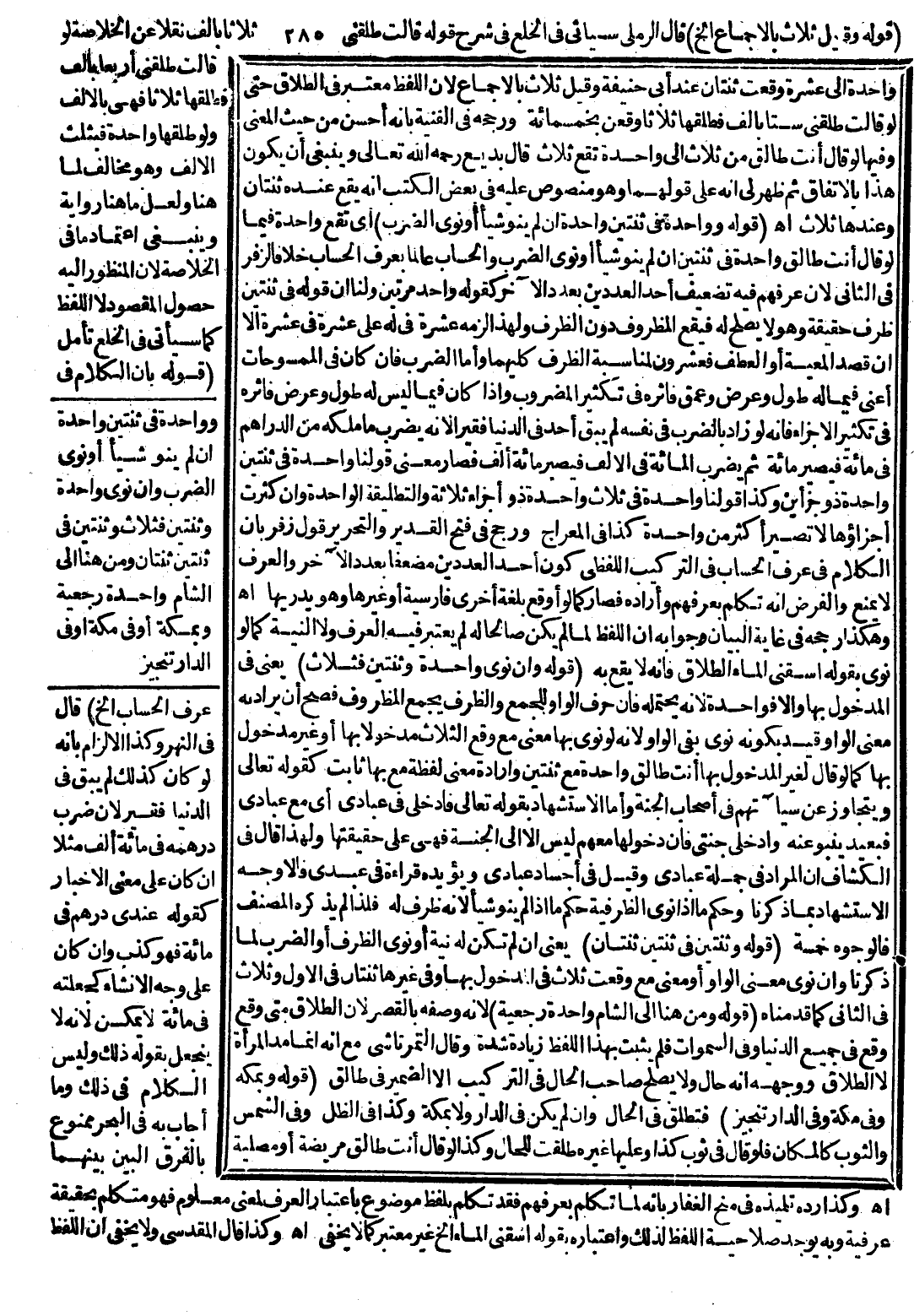 قَوْلُهُ: (وَوَاحِدَةٌ فِي ثِنْتَيْنِ وَاحِدَةٌ إنْ لَمْ يَنْوِ شَيْئًا أَوْ نَوَى الضَّرْبَ) أَيْ تَقَعُ وَاحِدَةً فِيمَا لَوْ قَالَ: أَنْت طَالِقٌ وَاحِدَةً فِي ثِنْتَيْنِ إنْ لَمْ يَنْوِ شَيْئًا أَوْ نَوَى الضَّرْبَ، وَالْحِسَابَ عَالِمًا بِعُرْفِ الْحِسَابِ خِلَافًا لِزُفَرَ فِي الثَّانِي لِأَنَّ عُرْفَهُمْ فِيهِ تَضْعِيفُ أَحَدِ الْعَدَدَيْنِ بِعَدَدِ الْآخَرِ كَقَوْلِهِ وَاحِدٌ مَرَّتَيْنِ وَلَنَا أَنَّ قَوْلَهُ فِي ثِنْتَيْنِ ظَرْفٌ حَقِيقَةً وَهُوَ لَا يَصْلُحُ لَهُ فَيَقَعُ الْمَظْرُوفُ دُونَ الظَّرْفِ وَلِهَذَا أَلْزَمَهُ عَشَرَةً فِي لَهُ عَلَيَّ عَشَرَةٌ فِي عَشَرَةٍ إلَّا إنْ قَصَدَ الْمَعِيَّةَ أَوْ الْعَطْفَ فَعِشْرُونَ لِمُنَاسَبَةِ الظَّرْفِ كِلَيْهِمَا، وَأَمَّا الضَّرْبُ فَإِنْ كَانَ فِي الْمَمْسُوحَاتِ أَعْنِي فِيمَا لَهُ طُولٌ وَعَرْضٌ وَعُمْقٌ فَأَثَرُهُ فِي تَكْثِيرِ الْمَضْرُوبِ وَإِذَا كَانَ فِيمَا لَيْسَ لَهُ طُولٌ وَعَرْضٌ فَأَثَرُهُ فِي تَكْثِيرِ الْأَجْزَاءِ فَإِنَّهُ لَوْ زَادَ بِالضَّرْبِ فِي نَفْسِهِ لَمْ يَبْقَ أَحَدٌ فِي الدُّنْيَا فَقِيرًا لِأَنَّهُ يَضْرِبُ مَا مَلَكَهُ مِنْ الدَّرَاهِمِ فِي مِائَةٍ فَيَصِيرُ مِائَةً ثُمَّ يَضْرِبُ الْمِائَةَ فِي الْأَلْفِ فَيَصِيرُ مِائَةَ أَلْفٍ فَصَارَ مَعْنَى قَوْلِنَا وَاحِدَةً فِي ثِنْتَيْنِ وَاحِدَةً ذَاتَ جُزْأَيْنِ وَكَذَا قَوْلُنَا وَاحِدَةٌ فِي ثَلَاثٍ وَاحِدَةٌ ذَاتُ أَجْزَاءٍ ثَلَاثَةٍ، وَالتَّطْلِيقَةُ الْوَاحِدَةُ، وَإِنْ كَثُرَتْ أَجْزَاؤُهَا لَا تَصِيرُ أَكْثَرَ مِنْ وَاحِدَةٍ كَذَا فِي الْمِعْرَاجِ وَرَجَّحَ فِي فَتْحِ الْقَدِيرِ، وَالتَّحْرِيرُ قَوْلُ زُفَرَ بِأَنَّ الْكَلَامَ فِي عُرْفِ الْحِسَابِ فِي التَّرْكِيبِ اللَّفْظِيِّ كَوْنُ أَحَدِ الْعَدَدَيْنِ مُضَعَّفًا بِعَدَدِ الْآخَرِ، وَالْعُرْفُ لَا يَمْنَعُ، وَالْفَرْضُ أَنَّهُ تَكَلَّمَ بِعُرْفِهِمْ وَأَرَادَهُ فَصَارَ كَمَا لَوْ أَوْقَعَ بِلُغَةٍ أُخْرَى فَارِسِيَّةٍ أَوْ غَيْرِهَا وَهُوَ يَدْرِيهَا اهـ.