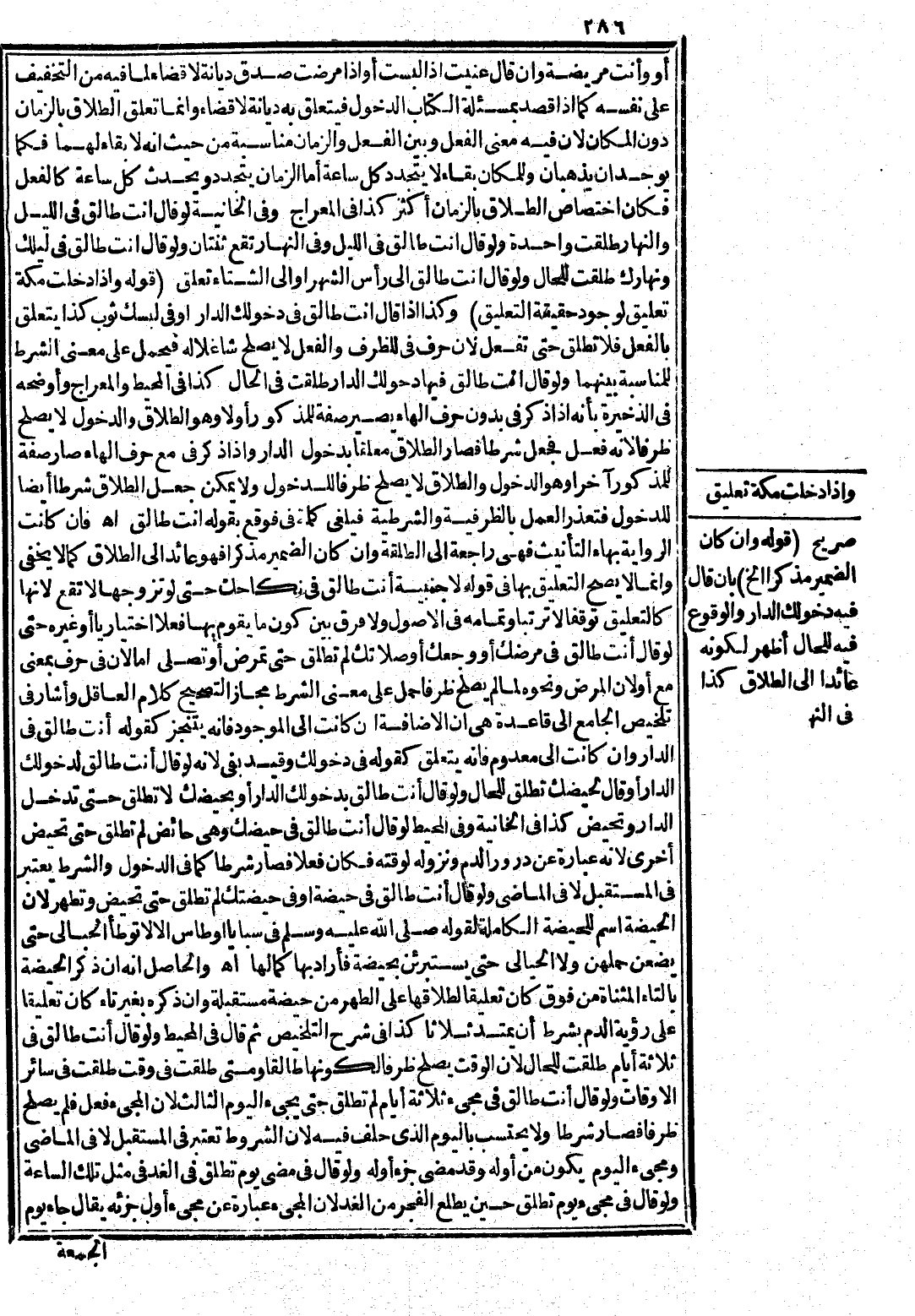 فَإِنْ كَانَتْ الرِّوَايَةُ بِهَاءِ التَّأْنِيثِ فَهِيَ رَاجِعَةٌ إلَى الطَّلْقَةِ، وَإِنْ كَانَ الضَّمِيرُ مُذَكَّرًا فَهُوَ عَائِدٌ إلَى الطَّلَاقِ كَمَا لَا يَخْفَى وَإِنَّمَا لَا يَصِحُّ التَّعْلِيقُ بِهَا فِي قَوْلِهِ لِأَجْنَبِيَّةٍ أَنْتِ طَالِقٌ فِي نِكَاحِك حَتَّى لَوْ تَزَوَّجَهَا لَا تَقَعُ لِأَنَّهَا كَالتَّعْلِيقِ تَوَقُّفًا لَا تَرَتُّبًا وَتَمَامُهُ فِي الْأُصُولِ وَلَا فَرْقَ بَيْنَ كَوْنِ مَا يَقُومُ بِهَا فِعْلًا اخْتِيَارِيًّا أَوْ غَيْرَهُ حَتَّى لَوْ قَالَ أَنْت طَالِقٌ فِي مَرَضِك أَوْ وَجَعِك أَوْ صَلَاتِك لَمْ تَطْلُقُ حَتَّى تَمْرَضَ أَوْ تُصَلِّيَ إمَّا لِأَنَّ " فِي " حَرْفٌ بِمَعْنَى مَعَ أَوْ لِأَنَّ الْمَرَضَ وَنَحْوَهُ لَمَّا لَمْ يَصْلُحْ ظَرْفًا حُمِلَ عَلَى مَعْنَى الشَّرْطِ مَجَازًا لِتَصْحِيحِ كَلَامِ الْعَاقِلِ.