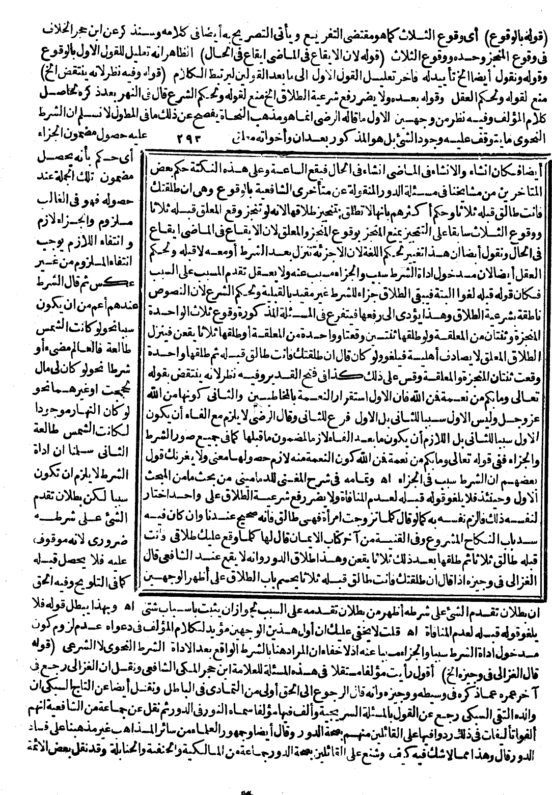 وَبِهَذَا يَبْطُلُ قَوْلُهُ: فَلَا يَلْغُو قَوْلُهُ: قَبْلَهُ لِعَدَمِ الْمُنَافَاةِ اهـ. قُلْت لَا يَخْفَى عَلَيْك أَنَّ أَوَّلَ هَذَيْنِ الْوَجْهَيْنِ مُؤَيِّدٌ لِكَلَامِ الْمُؤَلِّفِ فِي دَعْوَاهُ عَدَمَ لُزُومِ كَوْنِ مَدْخُولِ أَدَاةِ الشَّرْطِ سَبَبًا، وَالْجَزَاءِ مُسَبَّبًا عَنْهُ إذْ لَا خَفَاءَ أَنَّ الْمُرَادَ هُنَا بِالشَّرْطِ الْوَاقِعِ بَعْدَ الْأَدَاةِ الشَّرْطُ النَّحْوِيُّ لَا الشَّرْعِيُّ (قَوْلُهُ: قَالَ الْغَزَالِيُّ فِي وَجِيزِهِ. . . إلَخْ) أَقُولُ: رَأَيْت مُؤَلَّفًا مُسْتَقِلًّا فِي هَذِهِ الْمَسْأَلَةِ لِلْعَلَّامَةِ ابْنِ حَجَرٍ الْمَكِّيِّ الشَّافِعِيِّ وَنَقَلَ أَنَّ الْغَزَالِيَّ رَجَعَ فِي آخِرِ عُمُرِهِ عَمَّا ذَكَرَهُ فِي وَسِيطِهِ وَوَجِيزِهِ وَأَنَّهُ قَالَ الرُّجُوعُ إلَى الْحَقِّ أَوْلَى مِنْ التَّمَادِي فِي الْبَاطِلِ وَنَقَلَ أَيْضًا عَنْ التَّاجِ السُّبْكِيّ أَنَّ وَالِدَهُ التَّقِيَّ السُّبْكِيَّ رَجَعَ عَنْ الْقَوْلِ بِالْمَسْأَلَةِ السُّرَيْجِيَّةُ وَأَلَّفَ فِيهَا مُؤَلَّفًا سَمَّاهُ النَّوْرَ فِي الدَّوْرِ ثُمَّ نُقِلَ عَنْ جَمَاعَةٍ مِنْ الشَّافِعِيَّةِ أَنَّهُمْ أَلَّفُوا تَأْلِيفَاتٍ فِي ذَلِكَ رَدُّوا فِيهَا عَلَى الْقَائِلِينَ مِنْهُمْ بِصِحَّةِ الدَّوْرِ وَقَالَ أَيْضًا وَجُمْهُورُ الْعُلَمَاءِ مِنْ سَائِرِ الْمَذَاهِبِ غَيْرِ مَذْهَبِنَا عَلَى فَسَادِ الدَّوْرِ قَالَ وَهَذَا مِمَّا لَا شَكَّ فِيهِ كَيْفَ وَشَنَّعَ عَلَى الْقَائِلِينَ بِصِحَّةِ الدَّوْرِ جَمَاعَةٌ مِنْ الْمَالِكِيَّةِ، وَالْحَنَفِيَّةِ، وَالْحَنَابِلَةِ، وَقَدْ نَقَلَ بَعْضُ الْأَئِمَّةِ