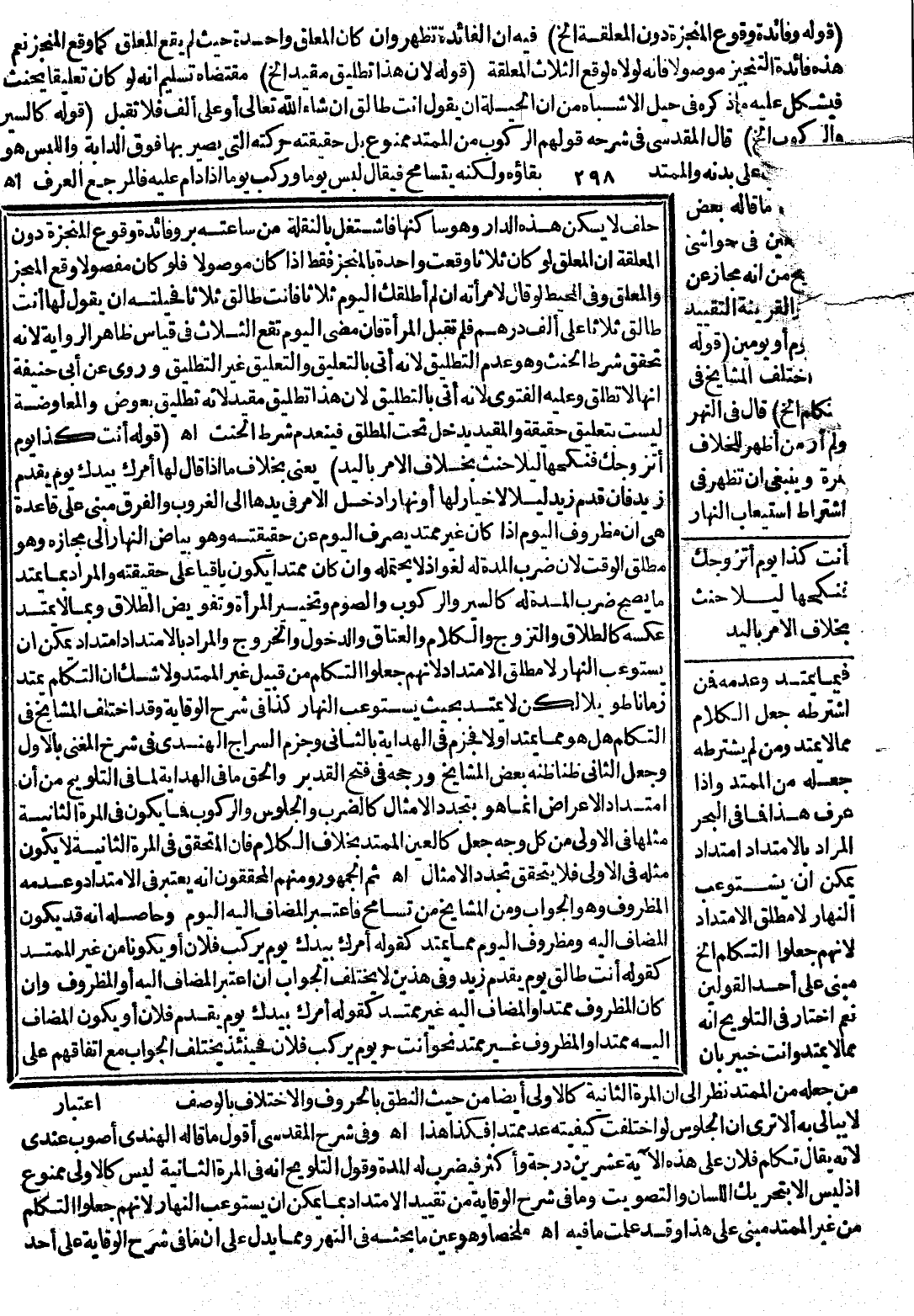 وَفِي شَرْحِ الْمَقْدِسِيَّ أَقُولُ: مَا قَالَهُ الْهِنْدِيُّ أَصْوَبُ عِنْدِي لِأَنَّهُ يُقَالُ تَكَلَّمَ فُلَانٌ عَلَى هَذِهِ الْآيَةِ عِشْرِينَ دَرَجَةً وَأَكْثَرَ فَيُضْرَبُ لَهُ الْمُدَّةُ وَقَوْلُ التَّلْوِيحِ إنَّهُ فِي الْمَرَّةِ الثَّانِيَةِ لَيْسَ كَالْأُولَى مَمْنُوعٌ إذْ لَيْسَ إلَّا بِتَحْرِيكِ اللِّسَانِ، وَالتَّصْوِيتِ وَمَا فِي شَرْحِ الْوِقَايَةِ مِنْ تَقْيِيدِ الِامْتِدَادِ بِمَا يُمْكِنُ أَنْ يَسْتَوْعِبَ النَّهَارَ لِأَنَّهُمْ جَعَلُوا التَّكَلُّمَ مِنْ غَيْرِ الْمُمْتَدِّ مَبْنِيٌّ عَلَى هَذَا، وَقَدْ عَلِمْت مَا فِيهِ اهـ. مُلَخَّصًا. وَهُوَ عَيْنُ مَا بَحَثَهُ فِي النَّهْرِ.