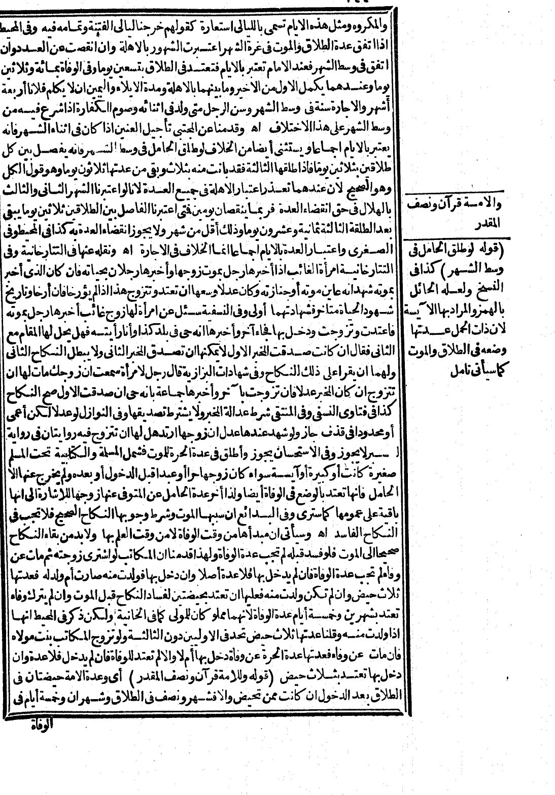 وَلَوْ شَهِدَ عِنْدَهَا عَدْلٌ أَنَّ زَوْجَهَا ارْتَدَّ هَلْ لَهَا أَنْ تَتَزَوَّجَ؟ فِيهِ رِوَايَتَانِ فِي رِوَايَةٍ لِلسِّيَرِ لَا يَجُوزُ، وَفِي الِاسْتِحْسَانِ يَجُوزُ وَأُطْلِقَ فِي عِدَّةِ الْحُرَّةِ لِلْمَوْتِ فَشَمِلَ الْمُسْلِمَةَ وَالْكِتَابِيَّةَ تَحْتَ الْمُسْلِمِ صَغِيرَةً كَانَتْ أَوْ كَبِيرَةً أَوْ آيِسَةً سَوَاءٌ كَانَ زَوْجُهَا حُرًّا أَوْ عَبْدًا قَبْلَ الدُّخُولِ أَوْ بَعْدَهُ وَلَمْ يَخْرُجْ عَنْهَا إلَّا الْحَامِلُ فَإِنَّهَا تَعْتَدُّ بِالْوَضْعِ فِي الْوَفَاةِ أَيْضًا وَلِذَا أَخَّرَ عِدَّةَ الْحَامِلِ عَنْ الْمُتَوَفَّى عَنْهَا زَوْجُهَا لِلْإِشَارَةِ إلَى أَنَّهَا بَاقِيَةٌ عَلَى عُمُومِهَا كَمَا سَتَرَى، وَفِي الْبَدَائِعِ أَنَّ سَبَبَهَا الْمَوْتُ وَشَرْطُ وُجُوبِهَا النِّكَاحُ الصَّحِيحُ فَلَا تَجِبُ فِي النِّكَاحِ الْفَاسِدِ اهـ.