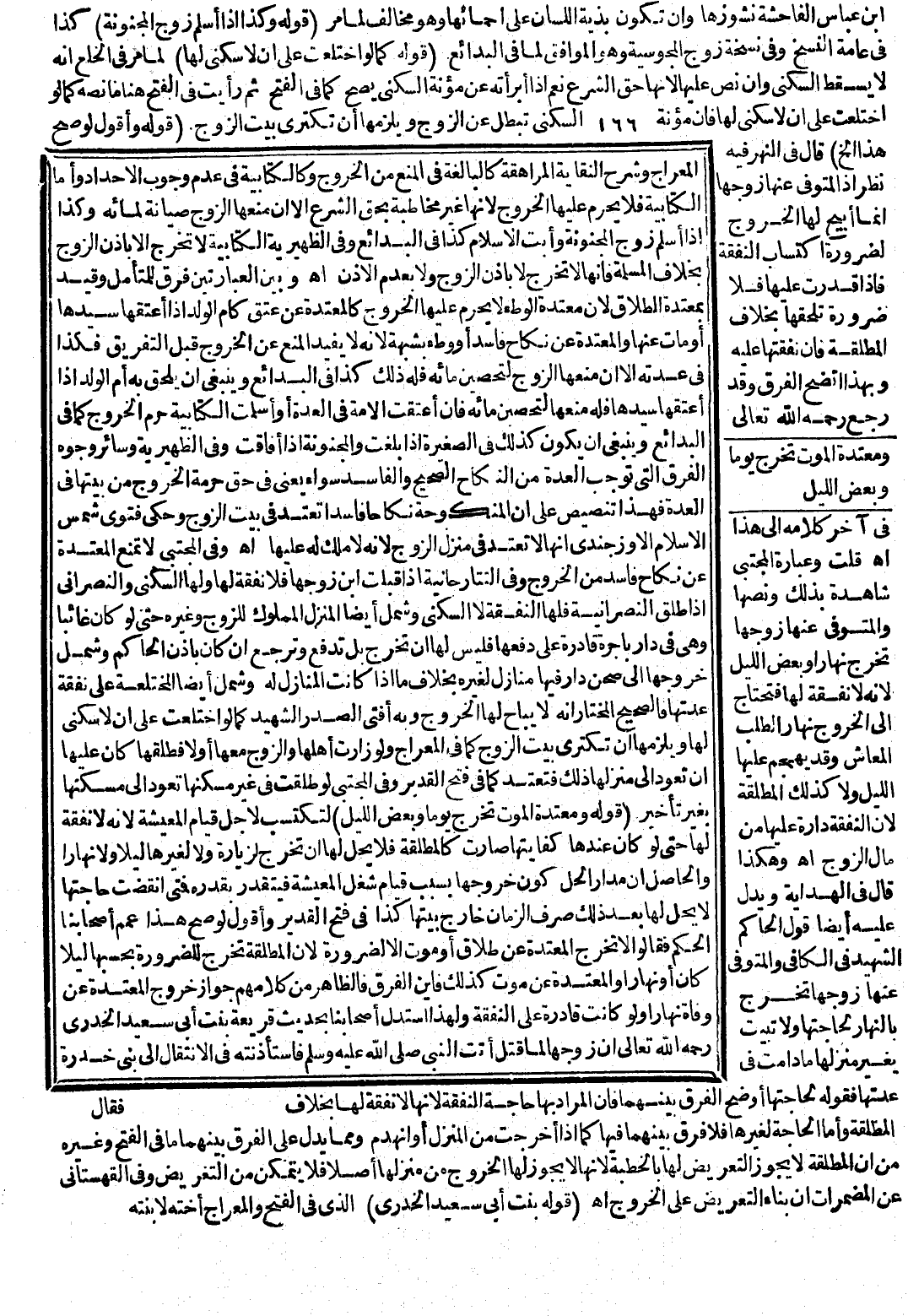 الْمِعْرَاجِ وَشَرْحِ النُّقَايَةِ الْمُرَاهِقَةُ كَالْبَالِغَةِ فِي الْمَنْعِ مِنْ الْخُرُوجِ وَكَالْكِتَابِيَّةِ فِي عَدَمِ وُجُوبِ الْإِحْدَادِ، وَأَمَّا الْكِتَابِيَّةُ فَلَا يَحْرُمُ عَلَيْهَا الْخُرُوجُ؛ لِأَنَّهَا غَيْرُ مُخَاطَبَةٍ بِحَقِّ الشَّرْعِ إلَّا إنْ مَنَعَهَا الزَّوْجُ صِيَانَةً لِمَائِهِ، وَكَذَا إذَا أَسْلَمَ زَوْجُ الْمَجْنُونَةِ وَأَبَتْ الْإِسْلَامَ كَذَا فِي الْبَدَائِعِ، وَفِي الظَّهِيرِيَّةِ الْكِتَابِيَّةُ لَا تَخْرُجُ إلَّا بِإِذْنِ الزَّوْجِ بِخِلَافِ الْمُسْلِمَةِ فَإِنَّهَا لَا تَخْرُجُ لَا بِإِذْنِ الزَّوْجِ وَلَا بِعَدَمِ الْإِذْنِ اهـ.