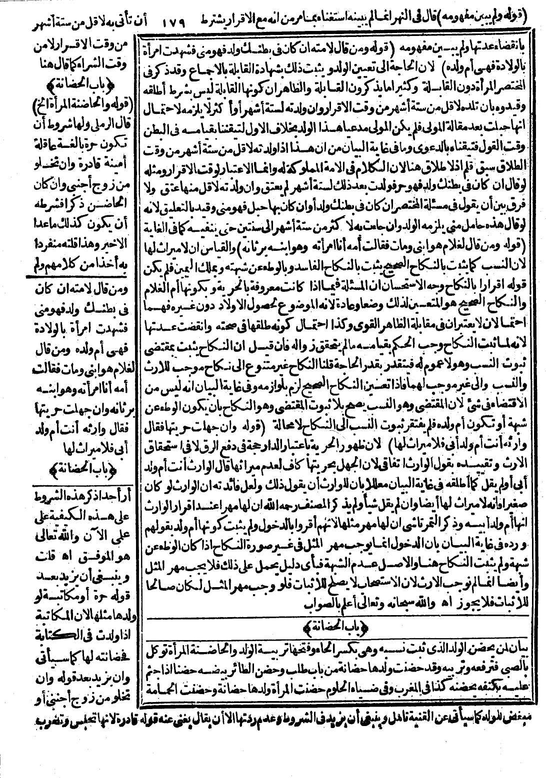 بَيَانٌ لِمَنْ يَحْضُنُ الْوَلَدَ الَّذِي ثَبَتَ نَسَبُهُ وَهِيَ بِكَسْرِ الْحَاءِ وَفَتْحِهَا تَرْبِيَةُ الْوَلَدِ، وَالْحَاضِنَةُ الْمَرْأَةُ تُوَكَّلُ بِالصَّبِيِّ فَتَرْفَعُهُ وَتُرَبِّيهِ وَقَدْ حَضَنَتْ وَلَدَهَا حَضَانَةً مِنْ بَابِ طَلَبَ وَحَضَنَ الطَّائِرُ بَيْضَهُ حَضْنًا إذَا جَثَمَ عَلَيْهِ بِكَنَفِهِ يَحْضُنُهُ كَذَا فِي الْمُغْرِبِ وَفِي ضِيَاءِ الْحُلُومِ حَضَنَتْ الْمَرْأَةُ وَلَدَهَا حَضَانَةً وَحَضَنَتْ الْحَمَامَةُ