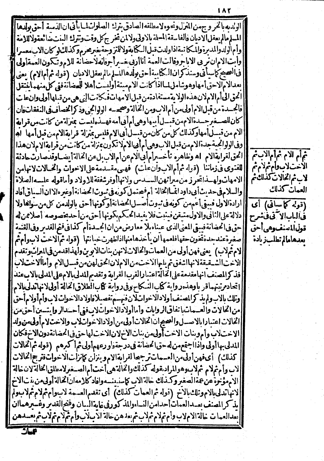 وَظَاهِرُهُ تَأْخِيرُ أُمِّ أَبِي الْأُمِّ عَنْ أُمِّ الْأَبِ بَلْ عَنْ الْخَالَةِ أَيْضًا وَقَدْ صَارَتْ حَادِثَةٌ لِلْفَتْوَى فِي زَمَانِنَا.