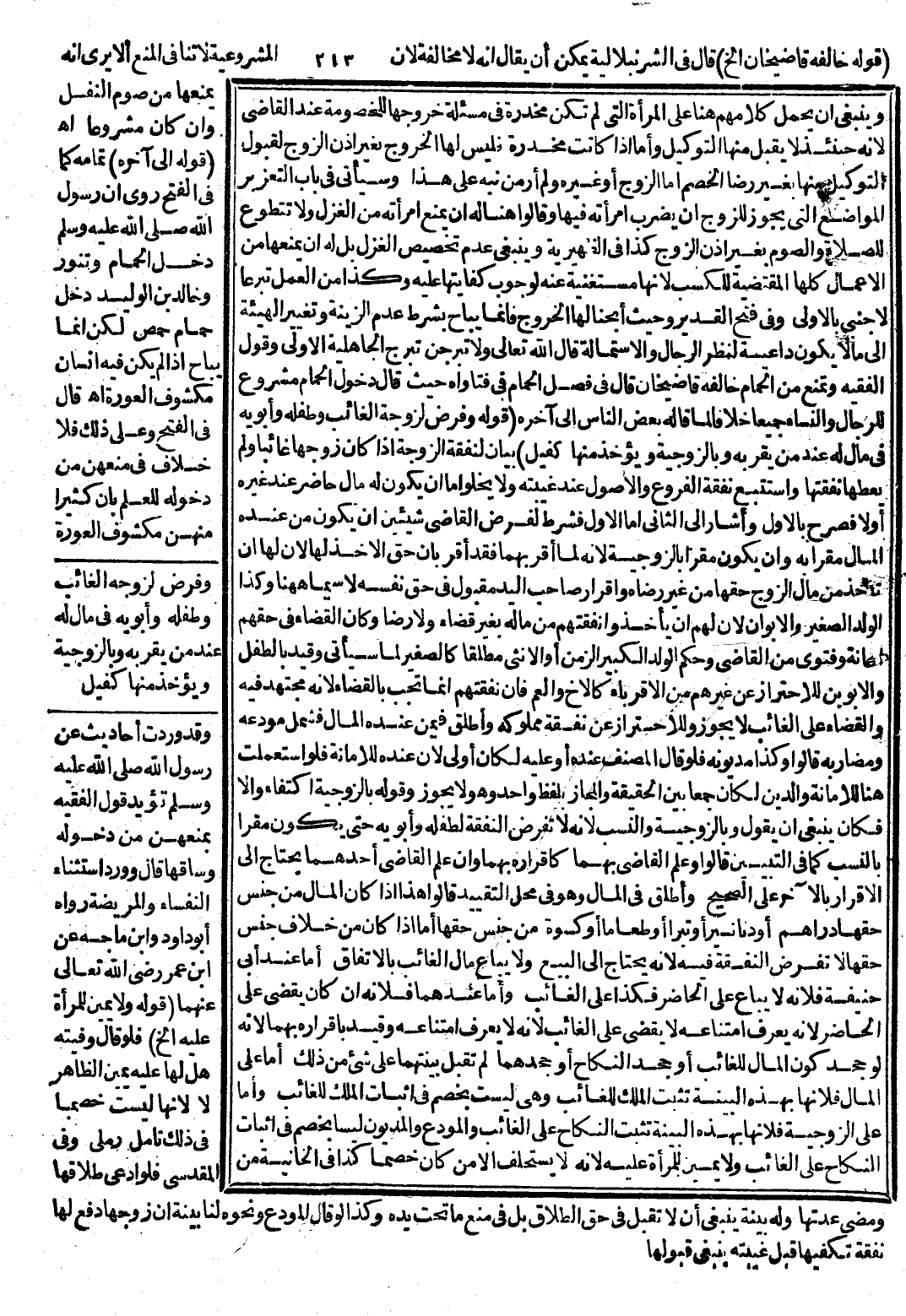 (قَوْلُهُ وَفَرَضَ لِزَوْجَةِ الْغَائِبِ وَطِفْلِهِ وَأَبَوَيْهِ فِي مَالٍ لَهُ عِنْدَ مَنْ يَقْرَبُهُ وَبِالزَّوْجِيَّةِ وَيُؤْخَذُ مِنْهَا كَفِيلٌ) بَيَانُ نَفَقَةِ الزَّوْجَةِ إذَا كَانَ زَوْجُهَا غَائِبًا وَلَمْ يُعْطِهَا نَفَقَتَهَا وَاسْتَتْبَعَ نَفَقَةَ الْفُرُوعِ وَالْأُصُولِ عِنْدَ غَيْبَتِهِ وَلَا يَخْلُو إمَّا أَنْ يَكُونَ لَهُ مَالٌ حَاضِرٌ عِنْدَ غَيْرِهِ أَوْ لَا فَصَرَّحَ بِالْأَوَّلِ وَأَشَارَ إلَى الثَّانِي أَمَّا الْأَوَّلُ فَشَرْطٌ لِفَرْضِ الْقَاضِي شَيْئَيْنِ أَنْ يَكُونَ مَنْ عِنْدَهُ الْمَالُ مُقِرًّا بِهِ وَأَنْ يَكُونَ مُقِرًّا بِالزَّوْجِيَّةِ؛ لِأَنَّهُ لَمَّا أَقَرَّ بِهِمَا فَقَدْ أَقَرَّ بِأَنَّ حَقَّ الْأَخْذِ لَهَا؛ لِأَنَّ لَهَا أَنْ تَأْخُذَ مِنْ مَالِ الزَّوْجِ حَقَّهَا مِنْ غَيْرِ رِضَاهُ، وَإِقْرَارُ صَاحِبِ الْيَدِ مَقْبُولٌ فِي حَقِّ نَفْسِهِ لَا سِيَّمَا هُنَا، وَكَذَا الْوَلَدُ الصَّغِيرُ وَالْأَبَوَانِ؛ لِأَنَّ لَهُمْ أَنْ يَأْخُذُوا نَفَقَتَهُمْ مِنْ مَالِهِ بِغَيْرِ قَضَاءٍ وَلَا رِضَا وَكَانَ الْقَضَاءُ فِي حَقِّهِمْ إعَانَةً وَفَتْوَى مِنْ الْقَاضِي وَحُكْمُ الْوَلَدِ الْكَبِيرِ الزَّمِنِ أَوْ الْأُنْثَى مُطْلَقًا كَالصَّغِيرِ لِمَا سَيَأْتِي وَقَيَّدَ بِالطِّفْلِ وَالْأَبَوَيْنِ لِلِاحْتِرَازِ عَنْ غَيْرِهِمْ مِنْ الْأَقْرِبَاءِ كَالْأَخِ وَالْعَمِّ فَإِنَّ نَفَقَتَهُمْ إنَّمَا تَجِبُ بِالْقَضَاءِ؛ لِأَنَّهُ مُجْتَهَدٌ فِيهِ وَالْقَضَاءُ عَلَى الْغَائِبِ لَا يَجُوزُ وَلِلِاحْتِرَازِ عَنْ نَفَقَةِ مَمْلُوكَةٍ وَأَطْلَقَ فِيمَنْ عِنْدَهُ الْمَالُ فَشَمِلَ مُودَعَهُ وَمُضَارِبَهُ قَالُوا وَكَذَا مَدْيُونُهُ فَلَوْ قَالَ الْمُصَنِّفُ عِنْدَهُ أَوْ عَلَيْهِ لَكَانَ أَوْلَى؛ لِأَنَّ عِنْدَهُ لِلْأَمَانَةِ فَلَوْ اُسْتُعْمِلَتْ هُنَا لِلْأَمَانَةِ وَالدَّيْنِ لَكَانَ جَمْعًا بَيْنَ الْحَقِيقَةِ وَالْمَجَازِ بِلَفْظٍ وَاحِدٍ وَهُوَ لَا يَجُوزُ.