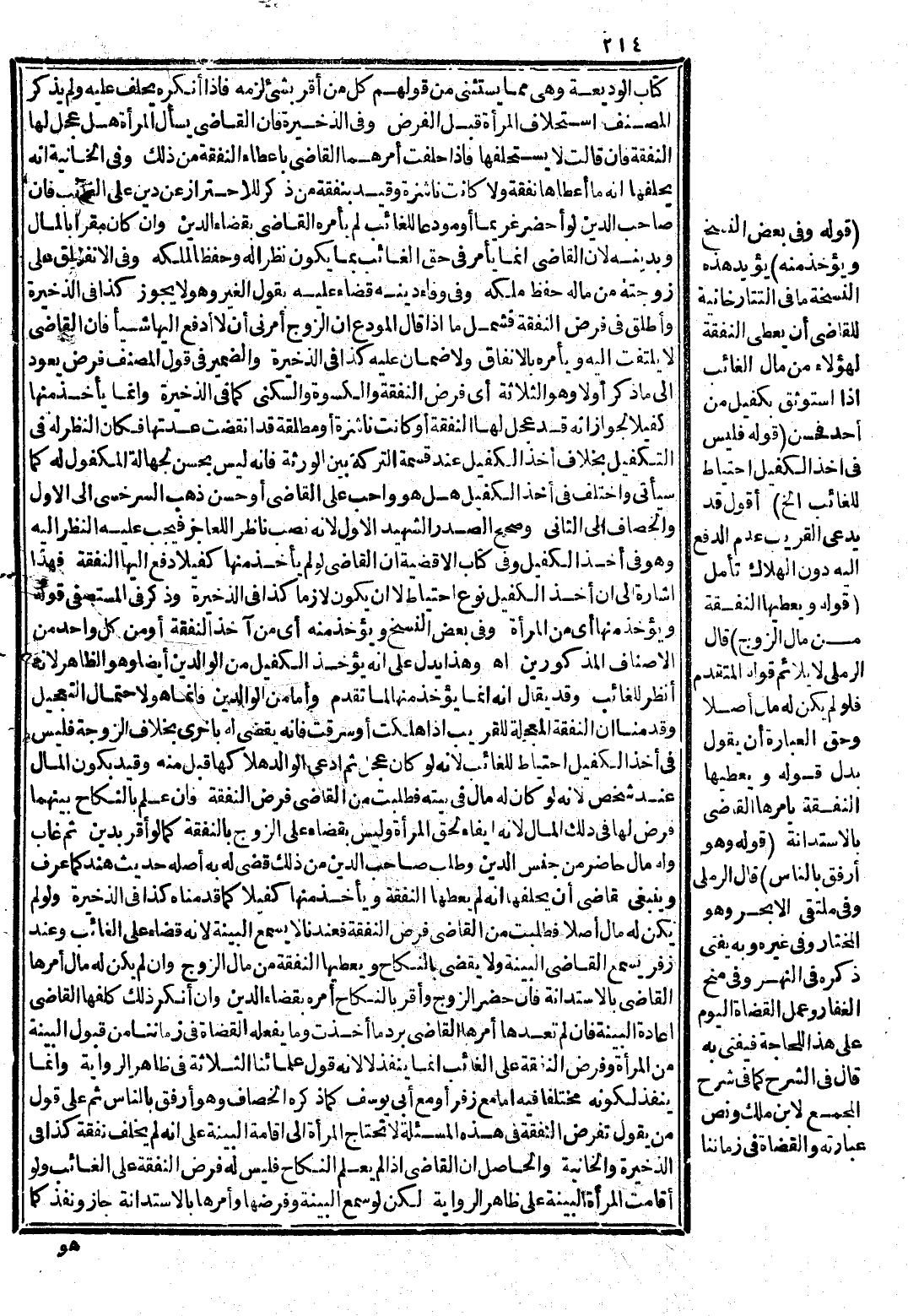 وَفِي الذَّخِيرَةِ فَإِنَّ الْقَاضِيَ يَسْأَلُ الْمَرْأَةَ هَلْ عَجَّلَ لَهَا النَّفَقَةَ فَإِنْ قَالَتْ لَا يَسْتَحْلِفُهَا فَإِذَا حَلَفَتْ أَمَرَهُمَا الْقَاضِي بِإِعْطَاءِ النَّفَقَةِ مِنْ ذَلِكَ وَفِي الْخَانِيَّةِ أَنَّهُ يُحَلِّفُهَا أَنَّهُ مَا أَعْطَاهَا نَفَقَةً وَلَا كَانَتْ نَاشِزَةً وَقَيَّدَ بِنَفَقَةِ مَنْ ذَكَرَ لِلِاحْتِرَازِ عَنْ دَيْنٍ عَلَى الْغَائِبِ فَإِنَّ صَاحِبَ الدَّيْنِ لَوْ أَحْضَرَ غَرِيمًا أَوْ مُودَعًا لِلْغَائِبِ لَمْ يَأْمُرْهُ الْقَاضِي بِقَضَاءِ الدَّيْنِ وَإِنْ كَانَ مُقِرًّا بِالْمَالِ وَبِدَيْنِهِ؛ لِأَنَّ الْقَاضِيَ إنَّمَا يَأْمُرُ فِي حَقِّ الْغَائِبِ بِمَا يَكُونُ نَظَرًا لَهُ وَحِفْظًا لِمِلْكِهِ وَفِي الْإِنْفَاقِ عَلَى زَوْجَتِهِ مِنْ مَالِهِ حِفْظُ مِلْكِهِ وَفِي وَفَاءِ دَيْنِهِ قَضَاءٌ عَلَيْهِ بِقَوْلِ الْغَيْرِ وَهُوَ لَا يَجُوزُ، كَذَا فِي الذَّخِيرَةِ وَأَطْلَقَ فَرْضَ النَّفَقَةِ فَشَمِلَ مَا إذَا قَالَ الْمُودِعُ إنَّ الزَّوْجَ أَمَرَنِي أَنْ لَا أَدْفَعَ إلَيْهَا شَيْئًا فَإِنَّ الْقَاضِيَ لَا يَلْتَفِتُ إلَيْهِ وَيَأْمُرُهُ بِالْإِنْفَاقِ وَلَا ضَمَانَ عَلَيْهِ، كَذَا فِي الذَّخِيرَةِ وَالضَّمِيرُ فِي قَوْلِ الْمُصَنِّفِ فَرَضَ يَعُودُ إلَى مَا ذُكِرَ أَوَّلًا وَهُوَ الثَّلَاثَةُ أَيْ فَرْضُ النَّفَقَةِ وَالْكِسْوَةِ وَالسُّكْنَى كَمَا فِي الذَّخِيرَةِ وَإِنَّمَا يَأْخُذُ مِنْهَا كَفِيلًا لِجَوَازِ أَنَّهُ قَدْ عَجَّلَ لَهَا النَّفَقَةَ أَوْ كَانَتْ نَاشِزَةً أَوْ مُطَلَّقَةً قَدْ انْقَضَتْ عِدَّتُهَا فَكَانَ النَّظَرُ لَهُ فِي التَّكْفِيلِ بِخِلَافِ أَخْذِ الْكَفِيلِ عِنْدَ قِسْمَةِ التَّرِكَةِ بَيْنَ الْوَرَثَةِ فَإِنَّهُ لَيْسَ بِحَسَنٍ لِجَهَالَةِ الْمَكْفُولِ لَهُ كَمَا سَيَأْتِي وَاخْتَلَفَ أَخْذُ الْكَفِيلِ هَلْ هُوَ وَاجِبٌ عَلَى الْقَاضِي أَوْ حَسَنٌ ذَهَبَ السَّرَخْسِيُّ إلَى الْأَوَّلِ وَالْخَصَّافُ إلَى الثَّانِي وَصَحَّحَ الصَّدْرُ الشَّهِيدُ الْأَوَّلَ؛ لِأَنَّهُ نُصِبَ نَاظِرًا لِلْعَاجِزِ فَيَجِبُ عَلَيْهِ النَّظَرُ إلَيْهِ وَهُوَ فِي أَخْذِ الْكَفِيلِ وَفِي كِتَابِ الْأَقْضِيَةِ أَنَّ الْقَاضِيَ لَوْ لَمْ يَأْخُذْ مِنْهَا كَفِيلًا دَفَعَ إلَيْهَا النَّفَقَةَ فَهَذَا إشَارَةٌ إلَى أَنَّ أَخْذَ الْكَفِيلِ نَوْعُ احْتِيَاطٍ لَا أَنْ يَكُونَ لَازِمًا كَذَا فِي الذَّخِيرَةِ وَذَكَرَ فِي الْمُسْتَصْفَى قَوْلَهُ وَيُؤْخَذُ مِنْهَا أَيْ مِنْ الْمَرْأَةِ وَفِي بَعْضِ النُّسَخِ وَيُؤْخَذُ مِنْهُ أَيْ مِنْ آخِذِ النَّفَقَةِ أَوْ مِنْ كُلِّ وَاحِدٍ مِنْ الْأَصْنَافِ الْمَذْكُورِينَ اهـ.