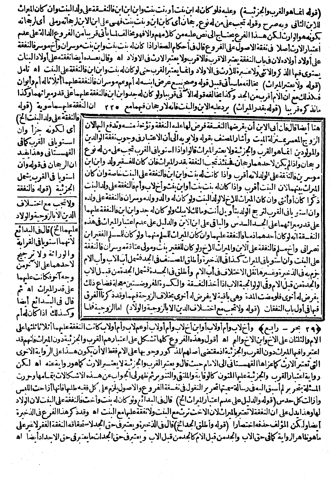 لَكِنَّ رِوَايَةَ اعْتِبَارِ الْقُرْبِ وَالْجُزْئِيَّةِ عَلَيْهَا الْمُتُونُ كَالْوِقَايَةِ وَالْمُلْتَقَى وَالتَّنْوِيرِ، ثُمَّ ظَهَرَ لِي الْجَوَابُ عَنْ هَذِهِ الْإِشْكَالَاتِ بِتَمَامِهَا وَحَرَّرْت الْمَسْأَلَةَ بِتَحْرِيرٍ لَمْ أُسْبَقْ إلَيْهِ فِي رِسَالَةٍ سَمَّيْتُهَا تَحْرِيرَ النُّقُولِ فِي نَفَقَةِ الْفُرُوعِ وَالْأُصُولِ يَلْزَمُ عَلَى كُلِّ فَقِيهٍ طَلَبُهَا فَإِنَّهَا أَزَاحَتْ اللَّبْسَ وَأَزَالَتْ كُلَّ حَدْسٍ.