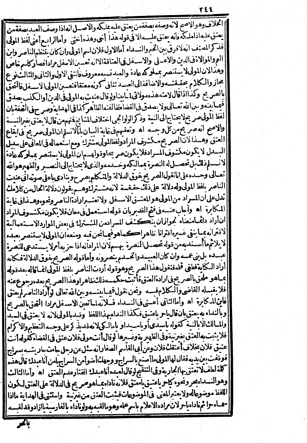وَتَعَقَّبَهُمْ فِي غَايَةِ الْبَيَانِ بِأَنَّا لَا نُسَلِّمُ أَنَّ الْمَوْلَى صَرِيحٌ فِي إيقَاعِ الْعِتْقِ، وَهَذَا؛ لِأَنَّ الصَّرِيحَ مَكْشُوفُ الْمُرَادِ وَلَفْظُ الْمَوْلَى مُشْتَرِكٌ وَمَعَ اسْتِعْمَالِهِ فِي الْمَعَانِي عَلَى سَبِيلِ الْبَدَلِ لَا يَكُونُ مَكْشُوفَ الْمُرَادِ فَلَا يَكُونُ صَرِيحًا وَقَوْلُهُمْ إنَّ الْمَوْلَى لَا يَسْتَنْصِرُ بِمَمْلُوكِهِ عَادَةً لَا نُسَلِّمُ ذَلِكَ، بَلْ تَحْصُلُ لَهُ النُّصْرَةُ بِمَمَالِيكِهِ وَخَدَمِهِ وَاَلَّذِي لَا يَحْتَاجُ إلَى النَّصِيرِ وَالظَّهِيرِ هُوَ اللَّهُ تَعَالَى وَحْدَهُ عَلَى أَنَّا نَقُولُ الصَّرِيحُ يَفُوقُ الدَّلَالَةَ وَالْمُتَكَلِّمُ يُصَرِّحُ وَيُنَادِي بِأَعْلَى صَوْتِهِ إنِّي عَنَيْت النَّاصِرَ بِلَفْظِ الْمَوْلَى وَلَهُ دَلَالَةٌ عَلَى ذَلِكَ حَقِيقَةً؛ لِأَنَّهُ مُشْتَرِكٌ وَهُمْ يَقُولُونَ دَلَالَةُ الْحَالِ مِنْ كَلَامِك تَدُلُّ عَلَى أَنَّ الْمُرَادَ مِنْ الْمَوْلَى هُوَ الْمُعْتِقُ الْأَسْفَلُ وَلَا تُعْتَبَرُ إرَادَةُ النَّاصِرِ وَنَحْوِهِ، وَهَذَا فِي غَايَةِ الْمُكَابَرَةِ اهـ.