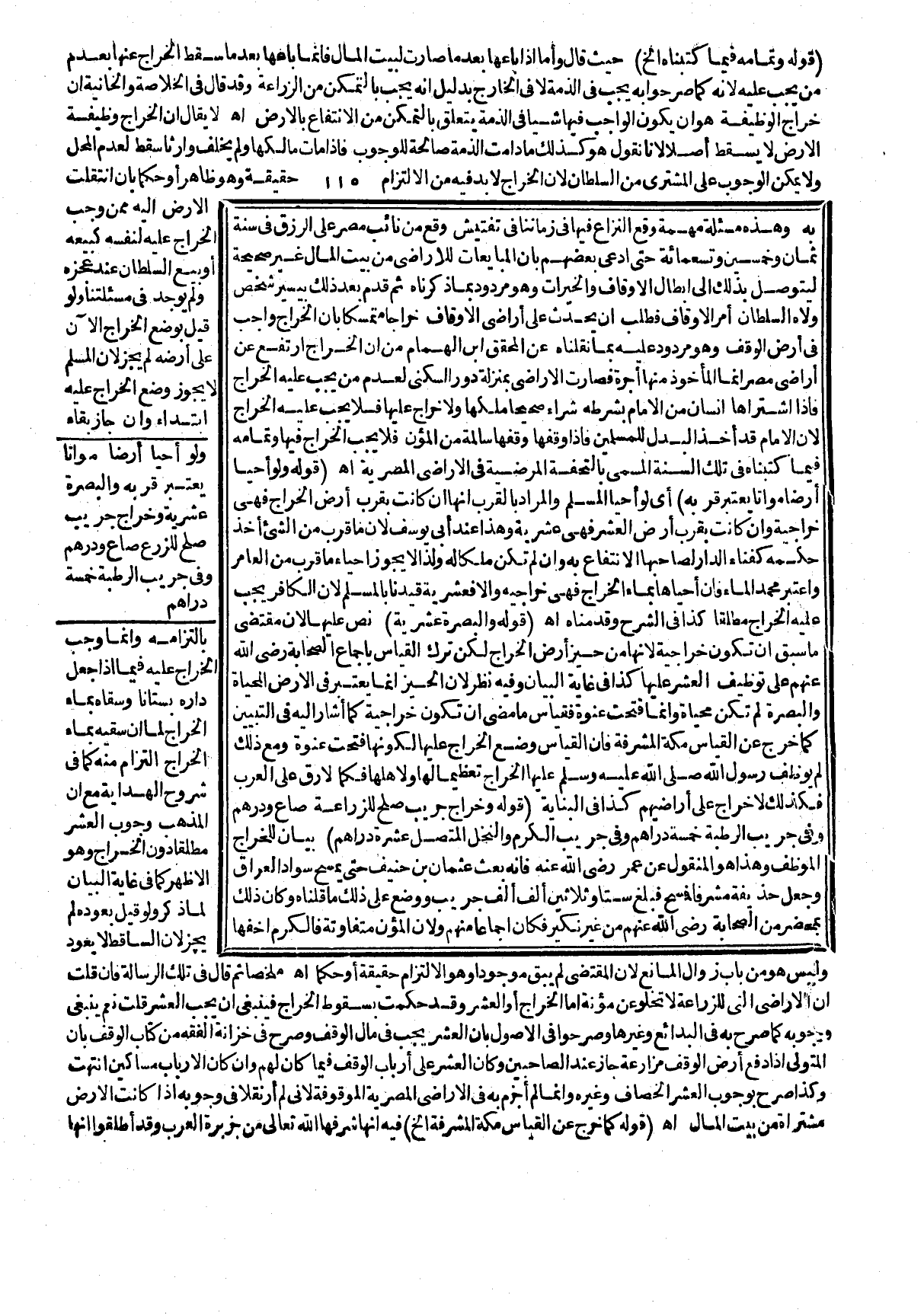 لَا يُقَالُ إنَّ الْخَرَاجَ وَظِيفَةُ الْأَرْضِ لَا يَسْقُطُ أَصْلًا لِأَنَّا نَقُولُ هُوَ كَذَلِكَ مَا دَامَتْ الذِّمَّةُ صَالِحَةً لِلْوُجُوبِ فَإِذَا مَاتَ مَالِكُهَا وَلَمْ يُخَلِّفْ وَارِثًا سَقَطَ لِعَدَمِ الْمَحَلِّ وَلَا يُمْكِنُ الْوُجُوبُ عَلَى الْمُشْتَرِي مِنْ السُّلْطَانِ لِأَنَّ الْخَرَاجَ لَا بُدَّ فِيهِ مِنْ الِالْتِزَامِ حَقِيقَةً وَهُوَ ظَاهِرٌ أَوْ حُكْمًا بِأَنْ انْتَقَلَتْ الْأَرْضُ إلَيْهِ مِمَّنْ وَجَبَ الْخَرَاجُ عَلَيْهِ لِنَفْسِهِ كَبَيْعِهِ أَوْ بَيْعِ السُّلْطَانِ عِنْدَ عَجْزِهِ وَلَمْ يُوجَدْ فِي مَسْأَلَتِنَا وَلَوْ قَبِلَ بِوَضْعِ الْخَرَاجِ الْآنَ عَلَى أَرْضِهِ لَمْ يَجُزْ لِأَنَّ الْمُسْلِمَ لَا يَجُوزُ وَضْعُ الْخَرَاجِ عَلَيْهِ ابْتِدَاءً وَإِنْ جَازَ بَقَاءً بِالْتِزَامِهِ وَإِنَّمَا وَجَبَ الْخَرَاجُ عَلَيْهِ فِيمَا إذَا جَعَلَ دَارِهِ بُسْتَانًا وَسَقَاهُ بِمَاءِ الْخَرَاجِ لِمَا أَنَّ سَقْيَهُ بِمَاءِ الْخَرَاجِ الْتِزَامٌ مِنْهُ كَمَا فِي شُرُوحِ الْهِدَايَةِ مَعَ أَنَّ الْمَذْهَبَ وُجُوبُ الْعُشْرِ مُطْلَقًا دُونَ الْخَرَاجِ وَهُوَ الْأَظْهَرُ كَمَا فِي غَايَةِ الْبَيَانِ لِمَا ذُكِرَ وَلَوْ قِيلَ بِعَوْدِهِ لَمْ يَجُزْ لِأَنَّ السَّاقِطَ لَا يَعُودُ وَلَيْسَ هُوَ مِنْ بَابِ زَوَالِ الْمَانِعِ لِأَنَّ الْمُقْتَضَى لَمْ يَبْقَ مَوْجُودًا وَهُوَ الِالْتِزَامُ حَقِيقَةً أَوْ حُكْمًا اهـ. مُلَخَّصًا ثُمَّ قَالَ تِلْكَ الرِّسَالَةُ.