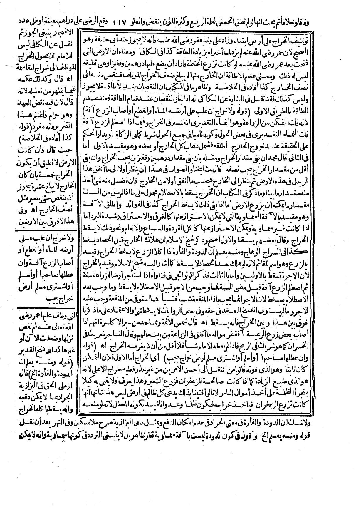 ـــــــــــــــــــــــــــــQوِفَاقًا وَخِلَافًا ثُمَّ بَحَثَ أَنَّهَا لَوْ لَمْ تُطِقْ الْخُمُسَ لِقِلَّةِ الرِّيعِ وَكَثْرَةِ الْمُؤَنِ يَنْقُص وَأَنَّهُ لَوْ وَقَعَ الرِّضَى عَلَى دَرَاهِمَ مُعَيَّنَةٍ أَوْ عَلَى عَدَدِ الْأَشْجَارِ يَنْبَغِي الْجَوَازُ ثُمَّ نَقَلَ عَنْ الْكَافِي لَيْسَ لِلْإِمَامِ أَنْ يُحَوِّلَ الْخَرَاجَ الْمُوَظَّفَ إلَى خَرَاجِ الْمُقَاسَمَةِ اهـ.