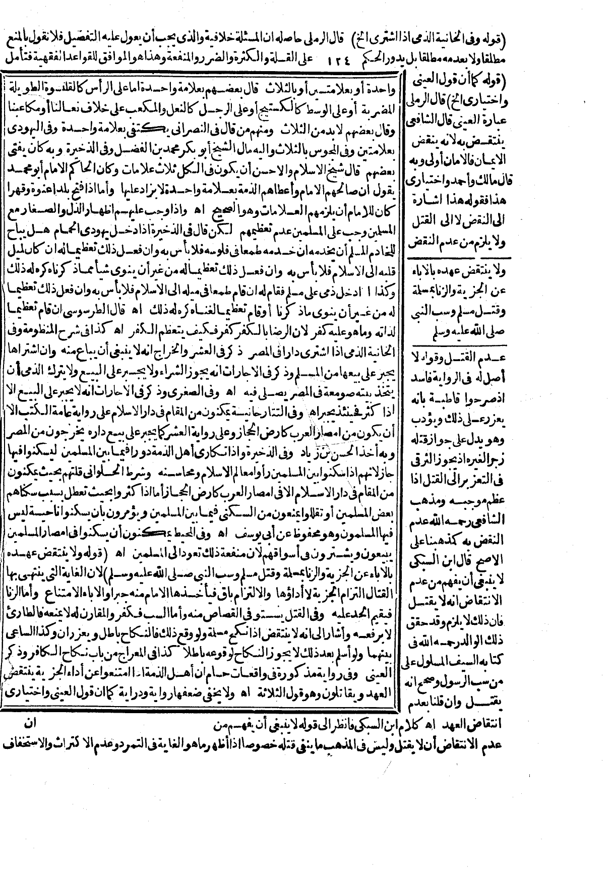 ـــــــــــــــــــــــــــــQ (قَوْلُهُ وَفِي الْخَانِيَّةِ الذِّمِّيُّ إذَا اشْتَرَى إلَخْ) قَالَ الرَّمْلِيُّ حَاصِلُهُ أَنَّ الْمَسْأَلَةَ خِلَافِيَّةٌ وَاَلَّذِي يَجِبُ أَنْ يُعَوَّلَ عَلَيْهِ التَّفْضِيلُ فَلَا نَقُولُ بِالْمَنْعِ مُطْلَقًا وَلَا بِعَدَمِهِ مُطْلَقًا بَلْ يَدُورُ الْحُكْمُ عَلَى الْقِلَّةِ وَالْكَثْرَةِ وَالضَّرَرِ وَالْمَنْفَعَةِ وَهَذَا هُوَ الْمُوَافِقُ لِلْقَوَاعِدِ الْفِقْهِيَّةِ فَتَأَمَّلْ (قَوْلُهُ كَمَا أَنَّ قَوْلَ الْعَيْنِيِّ وَاخْتِيَارِي إلَخْ) قَالَ الرَّمْلِيُّ عِبَارَةُ الْعَيْنِيِّ قَالَ الشَّافِعِيُّ يُنْتَقَضُ بِهِ لِأَنَّهُ يَنْقُضُ الْإِيمَانَ فَالْأَمَانُ أَوْلَى وَبِهِ قَالَ مَالِكٌ وَأَحْمَدُ وَاخْتِيَارِي هَذَا فَقَوْلُهُ هَذَا إشَارَةٌ إلَى النَّقْضِ لَا إلَى الْقَتْلِ وَلَا يَلْزَمُ مِنْ عَدَمِ النَّقْضِ عَدَمُ الْقَتْلِ وَقَوْلُهُ لَا أَصْلَ لَهُ فِي الرَّاوِيَةِ فَاسِدٌ إذَا صَرَّحُوا قَاطِبَةً بِأَنَّهُ يُعَزَّرُ عَلَى ذَلِكَ وَيُؤَدَّبُ وَهُوَ يَدُلُّ عَلَى جَوَازِ قَتْلِهِ زَجْرًا لِغَيْرِهِ إذْ يَجُوزُ التَّرَقِّي فِي التَّعْزِيرِ إلَى الْقَتْلِ إذَا عَظُمَ مُوجِبُهُ.