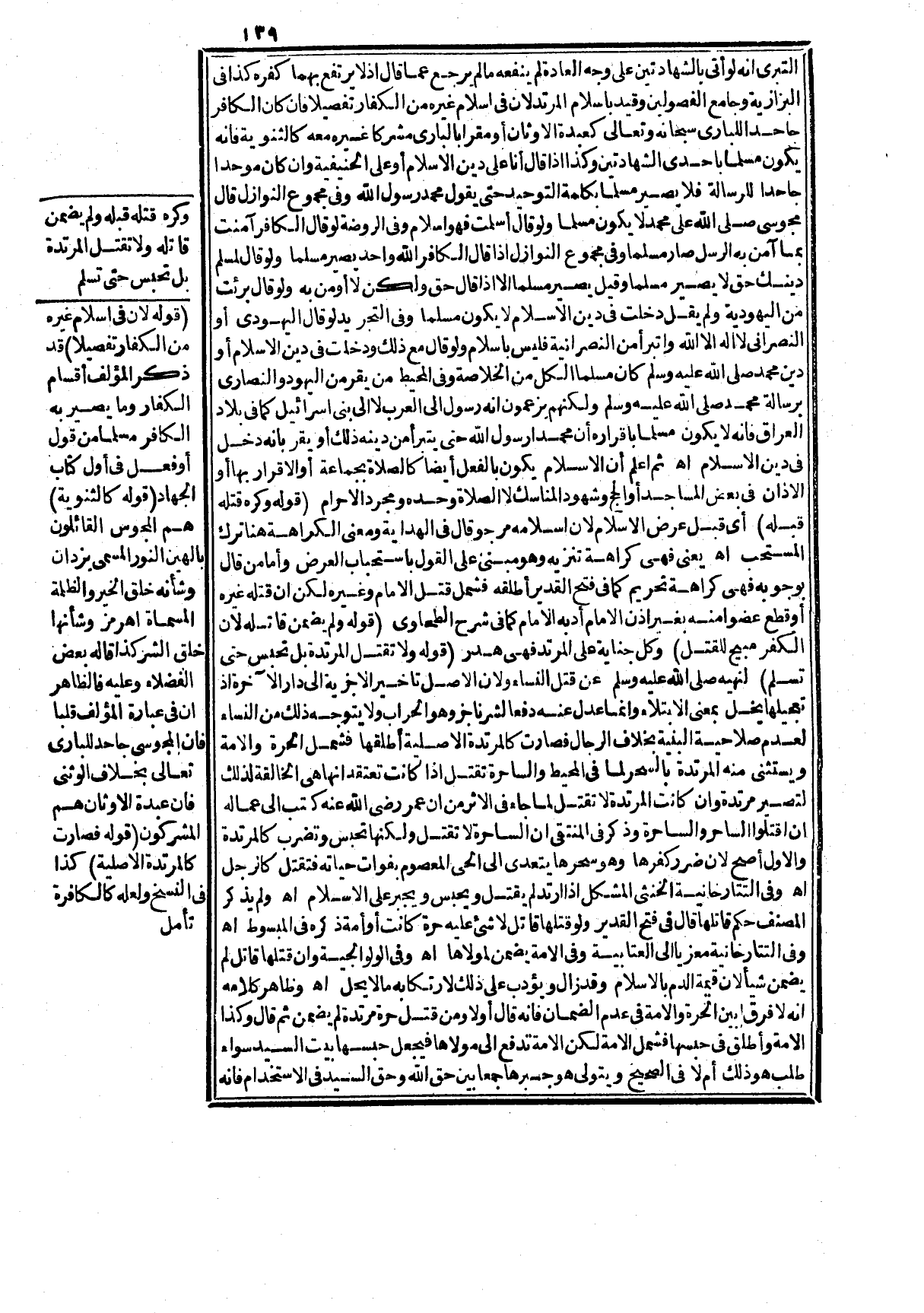 يَعْنِي: فَهِيَ كَرَاهَةُ تَنْزِيهٍ وَهُوَ مَبْنِيٌّ عَلَى الْقَوْلِ بِاسْتِحْبَابِ الْعَرْضِ وَأَمَّا مَنْ قَالَ بِوُجُوبِهِ فَهِيَ كَرَاهَةُ تَحْرِيمٍ كَمَا فِي فَتْحِ الْقَدِيرِ أَطْلَقَهُ فَشَمِلَ قَتْلَ الْإِمَامِ وَغَيْرِهِ لَكِنْ إنْ قَتَلَهُ غَيْرُهُ أَوْ قَطَعَ عُضْوًا مِنْهُ بِغَيْرِ إذْنِ الْإِمَامِ أَدَّبَهُ الْإِمَامُ كَمَا فِي شَرْحِ الطَّحَاوِيِّ (قَوْلُهُ وَلَمْ يَضْمَنْ قَاتِلُهُ لِأَنَّ الْكُفْرَ مُبِيحٌ لِلْقَتْلِ) وَكُلُّ جِنَايَةٍ عَلَى الْمُرْتَدِّ فَهِيَ هَدَرٌ.