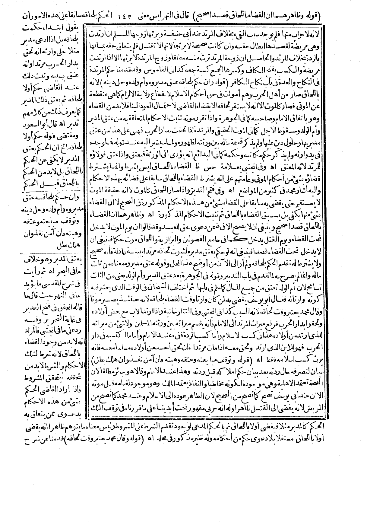 ـــــــــــــــــــــــــــــQ (قَوْلُهُ وَظَاهِرُهُمَا أَنَّ الْقَضَاءَ بِاللِّحَاقِ قَصْدًا صَحِيحٌ) قَالَ فِي النَّهْرِ لَيْسَ مَعْنَى الْحُكْمِ بِلِحَاقِهِ سَابِقًا عَلَى هَذِهِ الْأُمُورِ أَنْ يَقُولَ ابْتِدَاءً حَكَمْت بِلِحَاقِهِ بَلْ إذَا ادَّعَى مُدَبَّرٌ مَثَلًا عَلَى وَارِثِهِ أَنَّهُ لَحِقَ بِدَارِ الْحَرْبِ مُرْتَدًّا وَأَنَّهُ عَتَقَ بِسَبَبِهِ وَثَبَتَ ذَلِكَ عِنْدَ الْقَاضِي حُكِمَ أَوَّلًا بِلِحَاقِهِ ثُمَّ بِعِتْقِ ذَلِكَ الْمُدَبَّرِ كَمَا يُعْرَفُ ذَلِكَ مِنْ كَلَامِهِمْ تَدَبَّرْ اهـ.