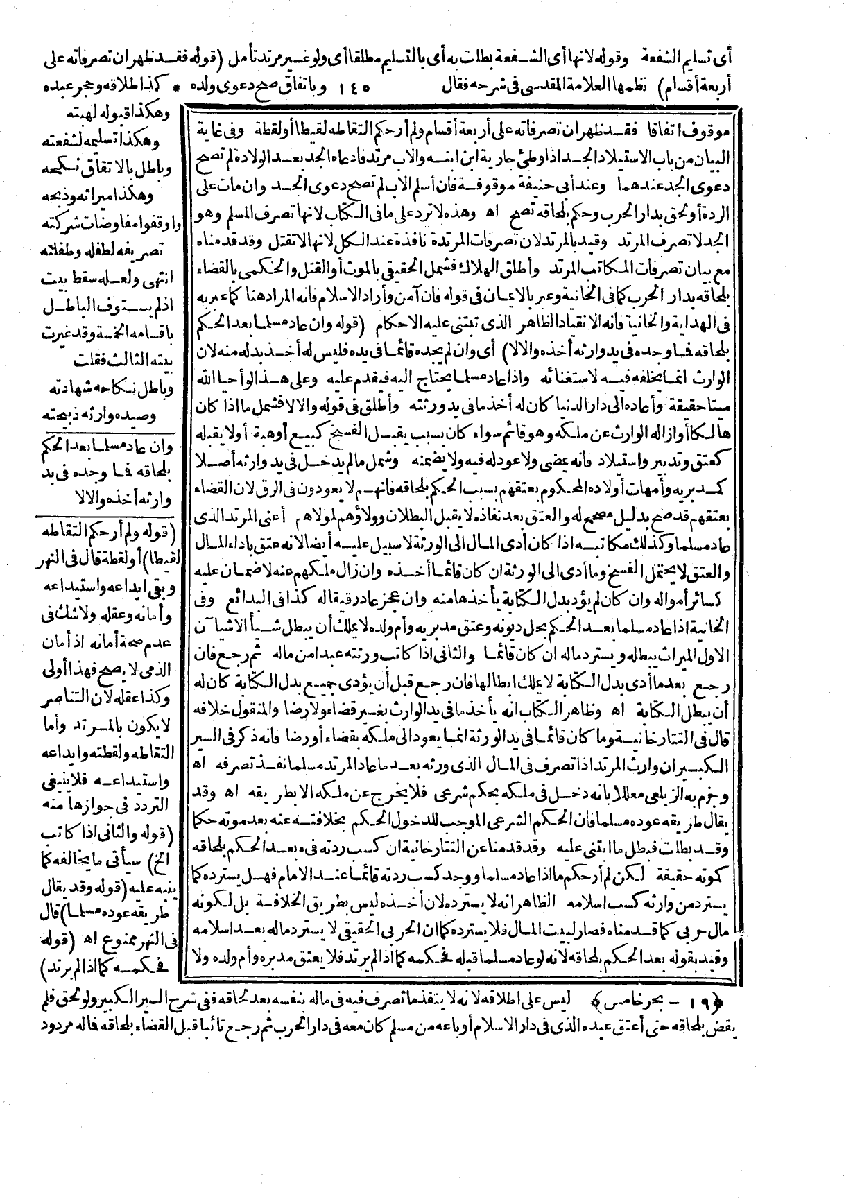 ـــــــــــــــــــــــــــــQأَيْ تَسْلِيمِ الشُّفْعَةِ وَقَوْلُهُ لِأَنَّهَا أَيْ الشُّفْعَةَ بَطَلَتْ بِهِ أَيْ بِالتَّسْلِيمِ مُطْلَقًا أَيْ وَلَوْ غَيْرَ مُرْتَدٍّ تَأَمَّلْ (قَوْلُهُ فَقَدْ ظَهَرَ أَنَّ تَصَرُّفَاتِهِ عَلَى أَرْبَعَةِ أَقْسَامٍ) نَظَمَهَا الْعَلَّامَةُ الْمَقْدِسِيَّ فِي شَرْحِهِ فَقَالَ